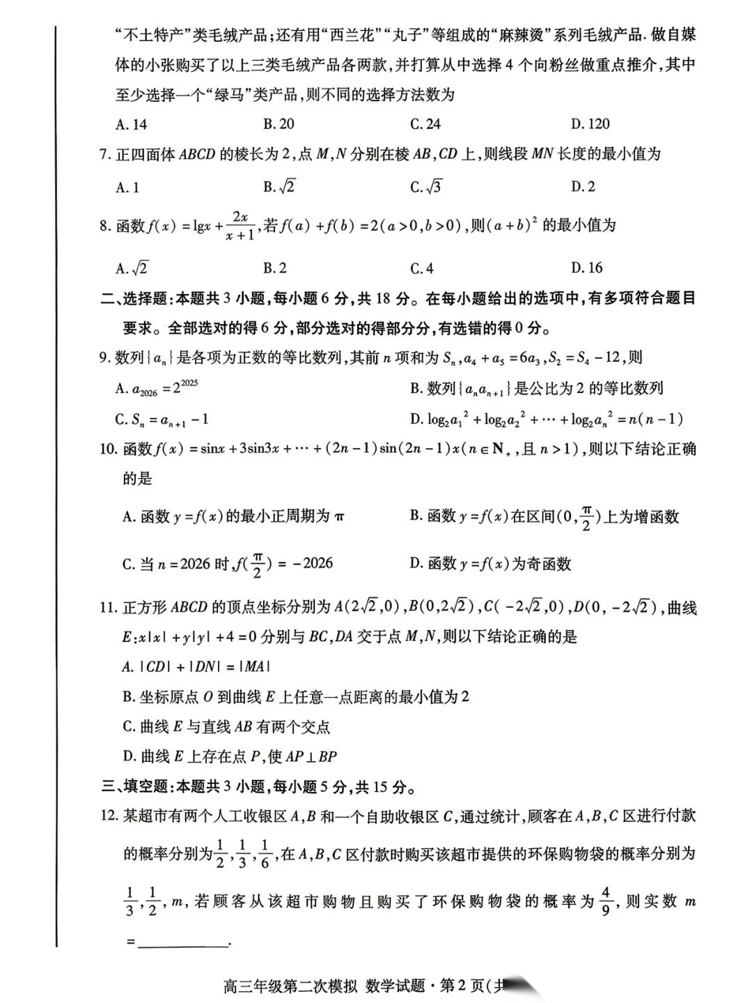 【重庆卷】重庆市2026年普通高等学校招生全国统一考试高三第二次联合诊断考试(康德二诊)(4.9-4.11) 全科试题卷(含日语)+答案 【重庆卷】重庆市2026年普通高等学校招生全国统一考试高三第二次联合诊断考试(康德二诊)(4.9-4.11) 全科试题...