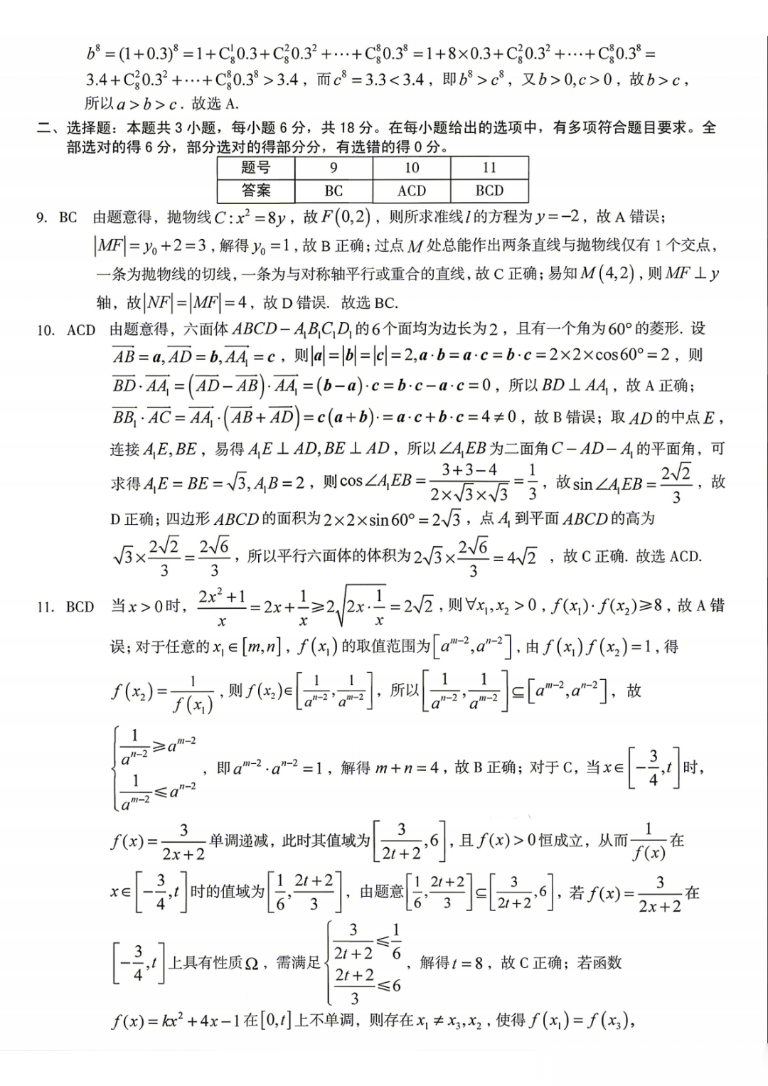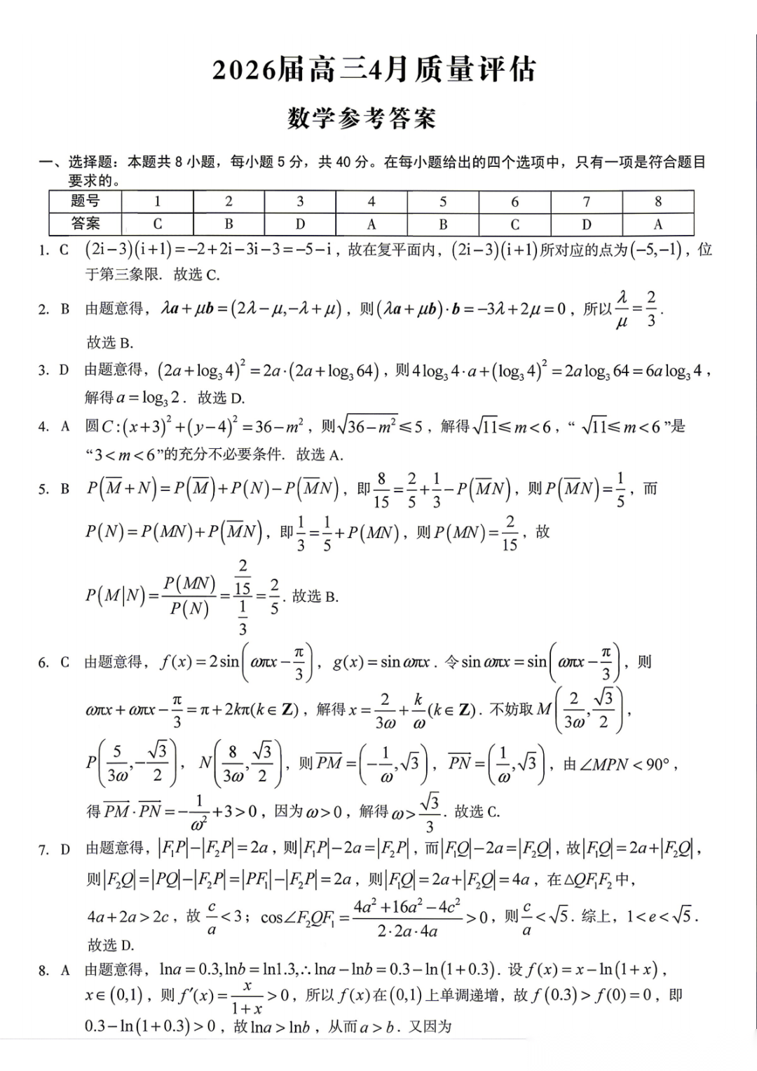 2026届高考冲刺测评一答案 2026届高考冲刺测评一答案
