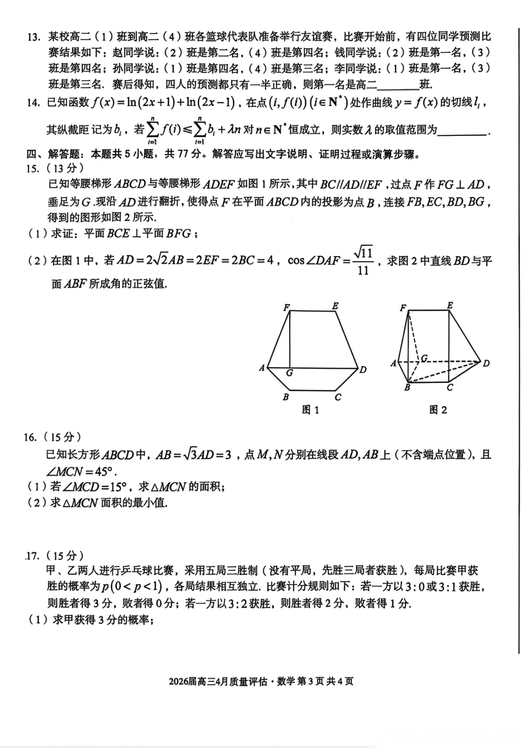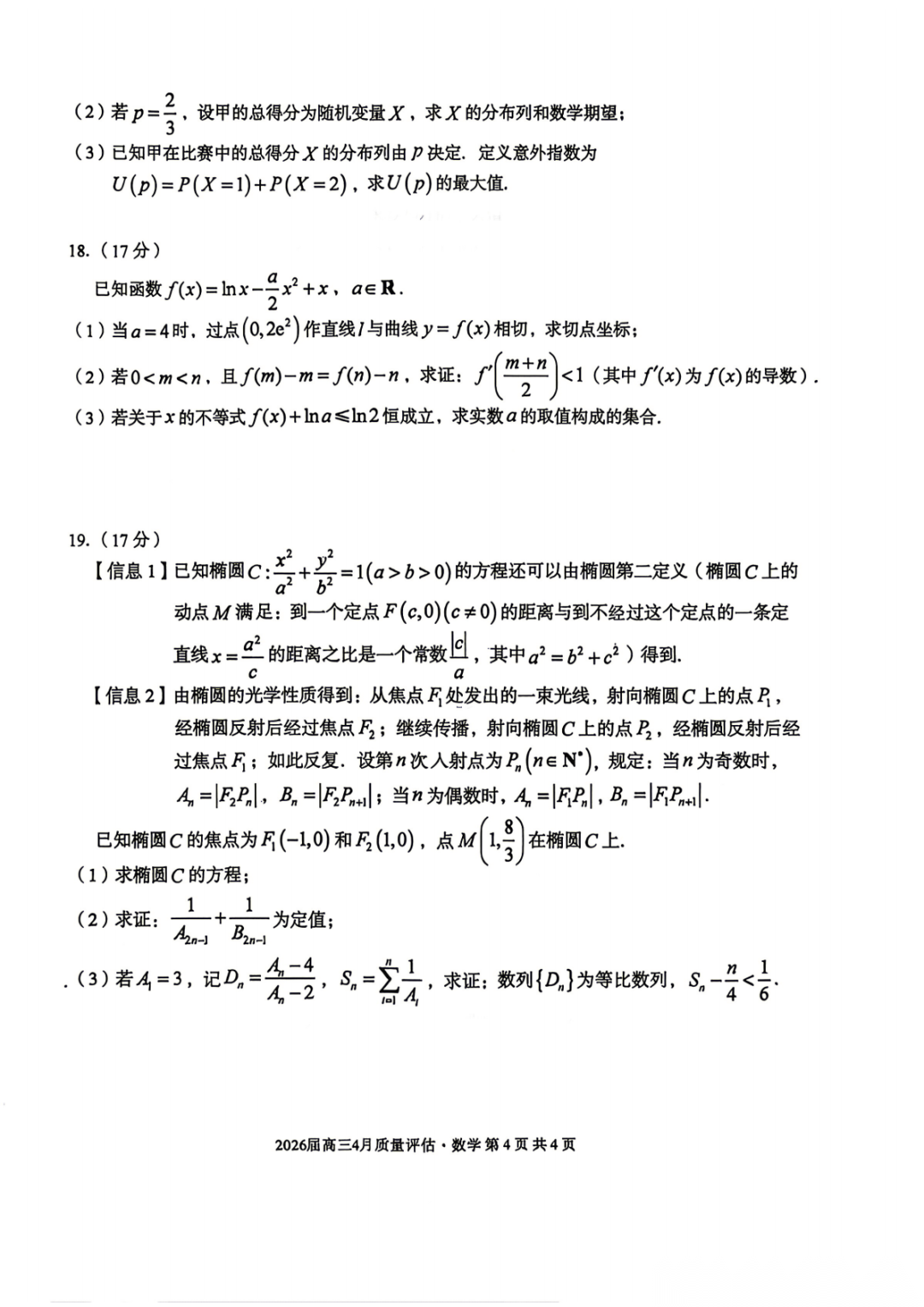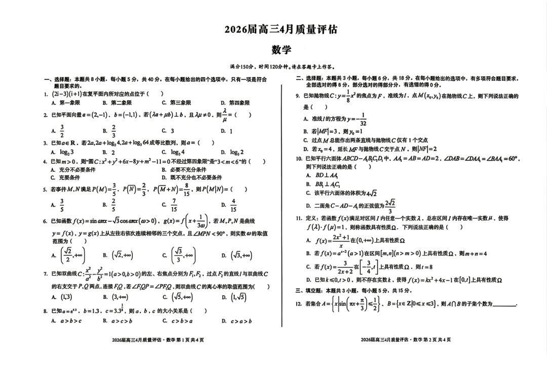 山东省实验中学2026届高三4月阶段性测试 山东省实验中学2026届高三4月阶段性测试