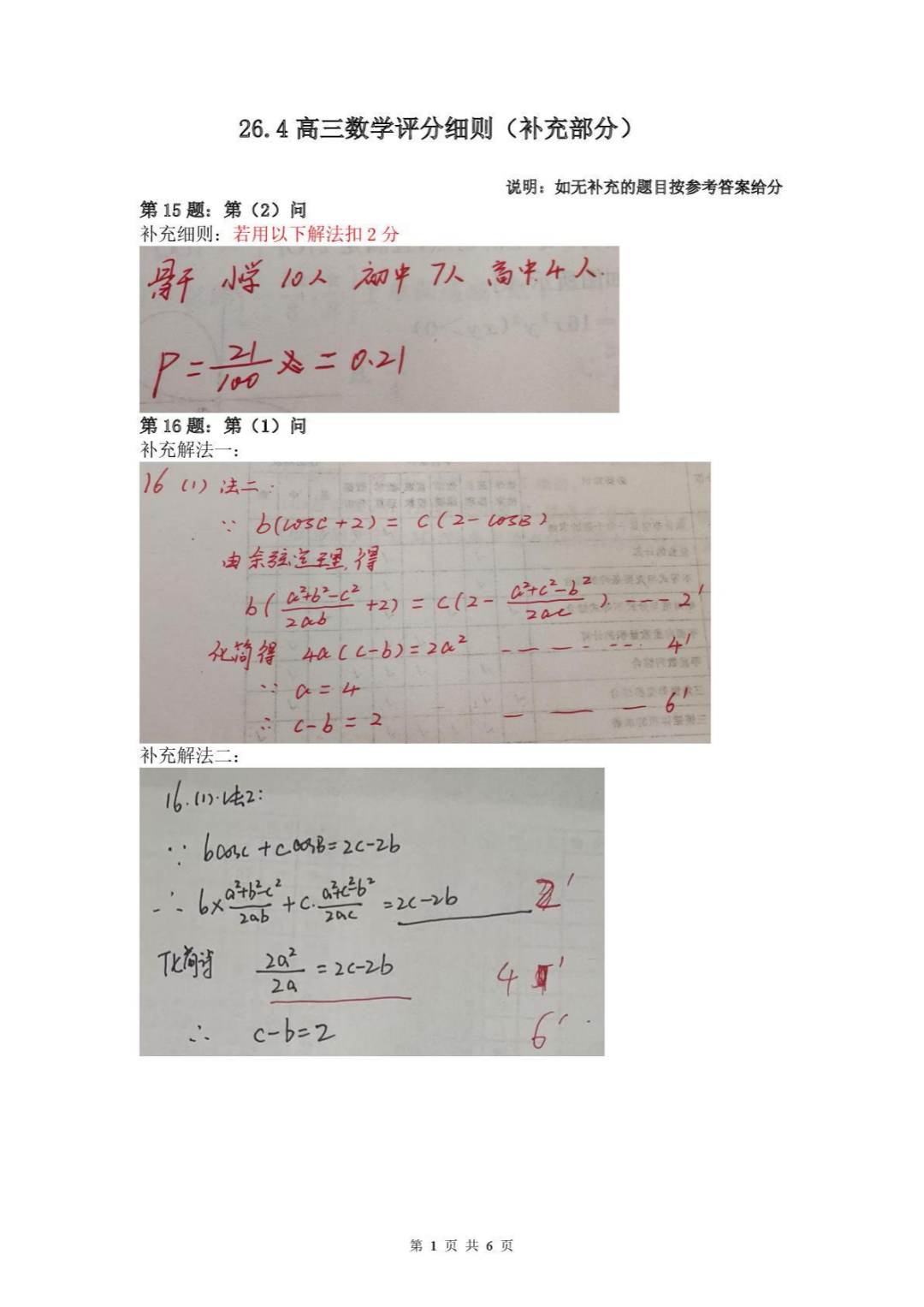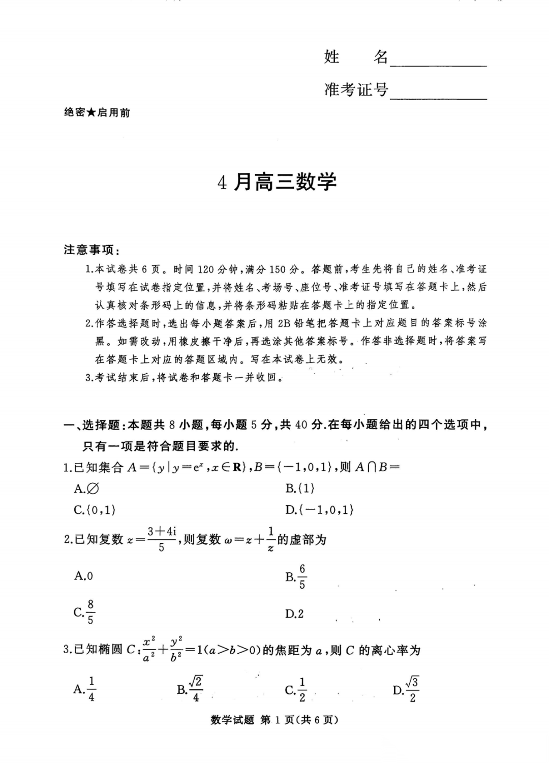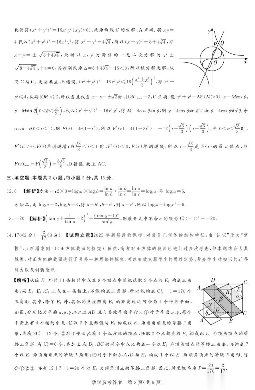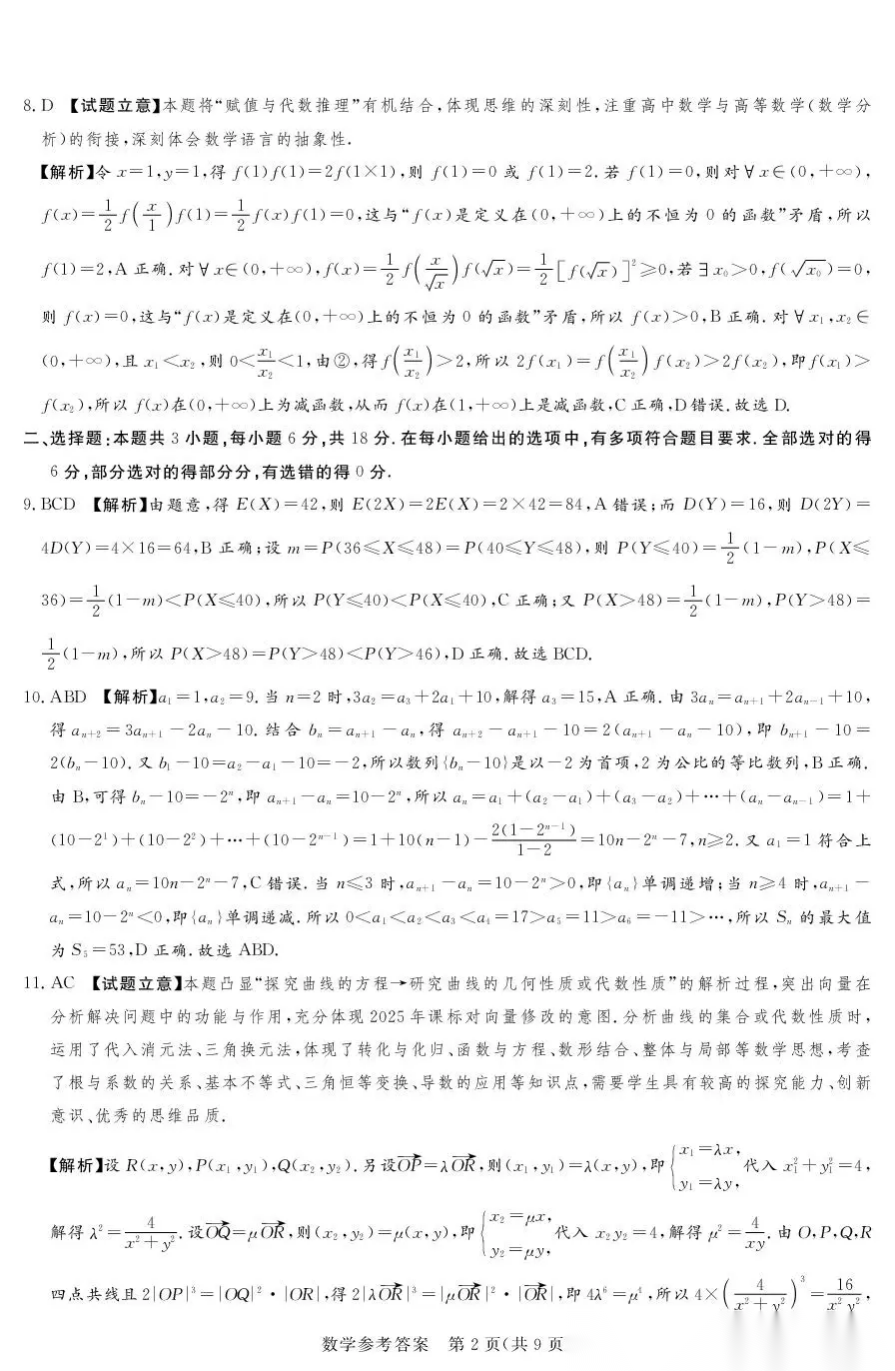 2026届高考冲刺测评一答案 2026届高考冲刺测评一答案