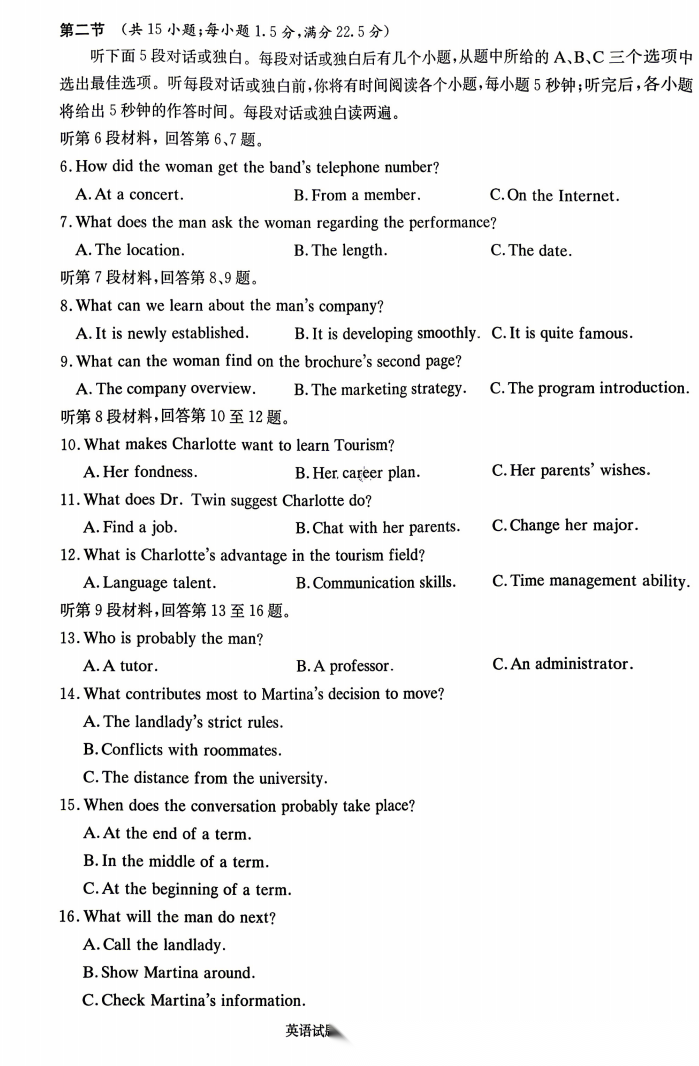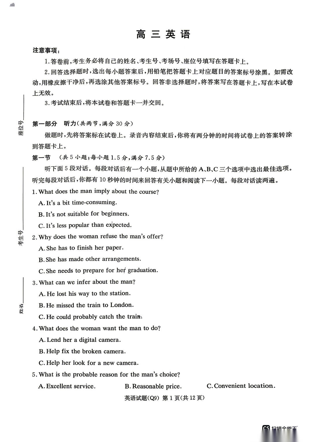 2026届高考冲刺测评一答案 2026届高考冲刺测评一答案