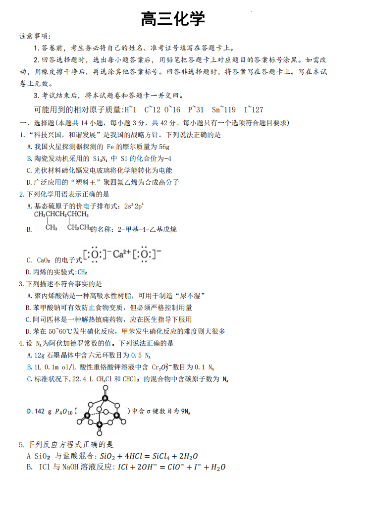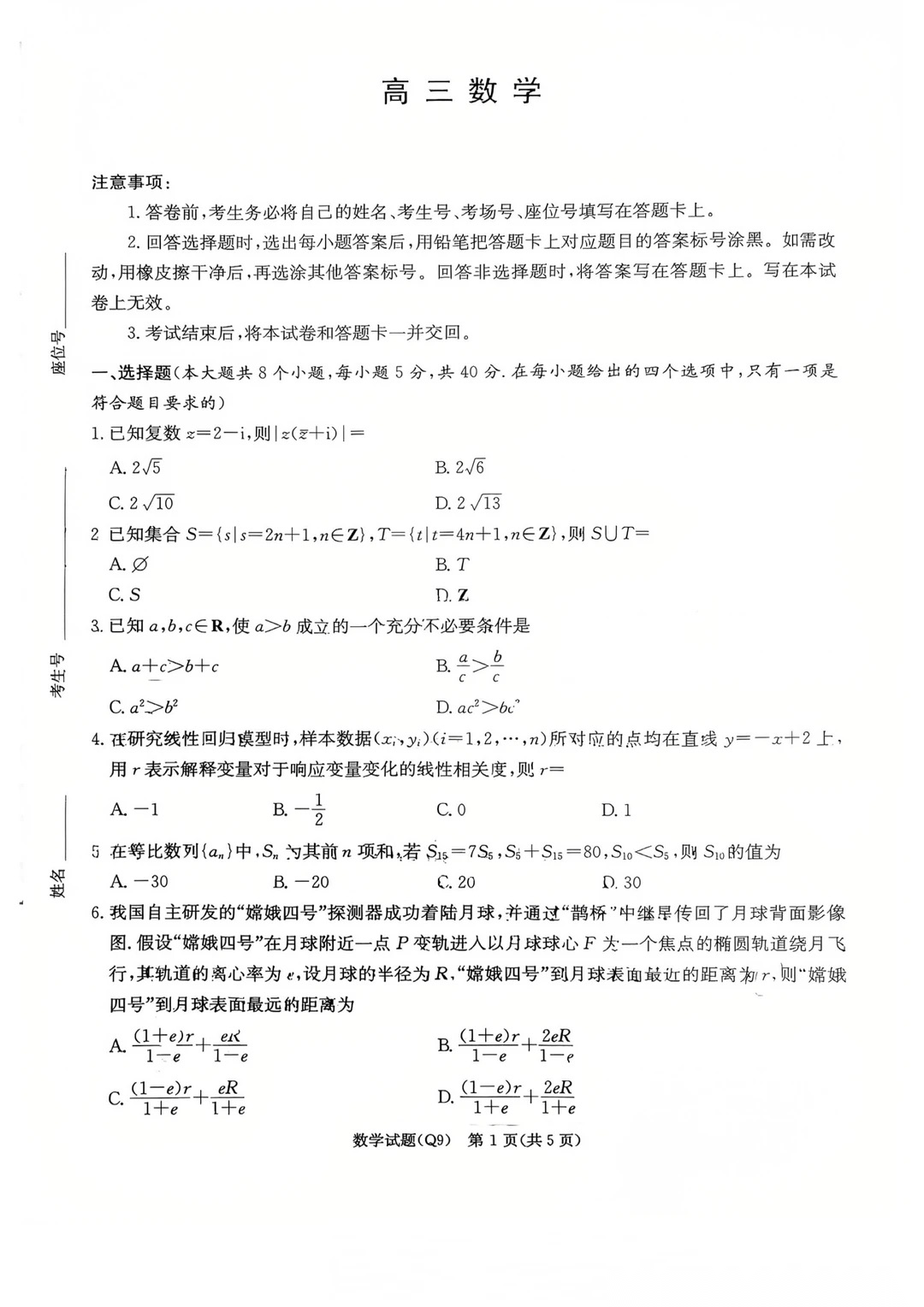 山东省实验中学2026届高三4月阶段性测试 山东省实验中学2026届高三4月阶段性测试