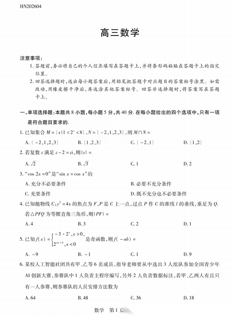 【Top50强校】【湖南卷】湖南省长沙市长沙一中2026届高三月考试卷(九)(4.8-4.9) 数学物理化学英语历史试题卷+答案 【Top50强校】【湖南卷】湖南省长沙市长沙一中2026届高三月考试卷(九)(4.8-4.9) 数学物理化学英语历史...
