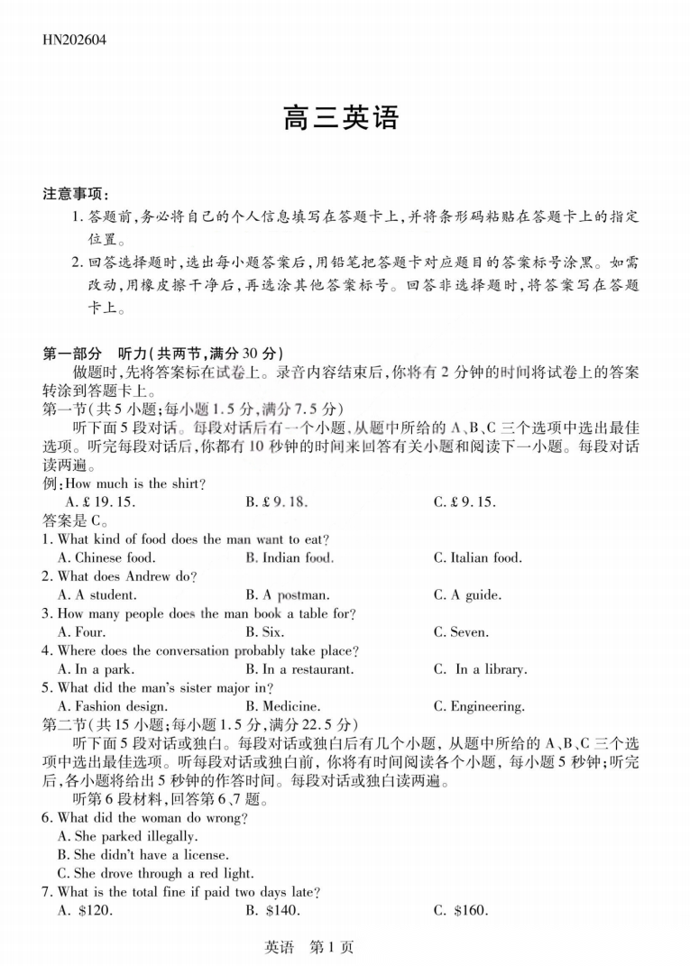 【全科】河南省湘豫名校联盟2026届高三4月联考 【全科】河南省湘豫名校联盟2026届高三4月联考