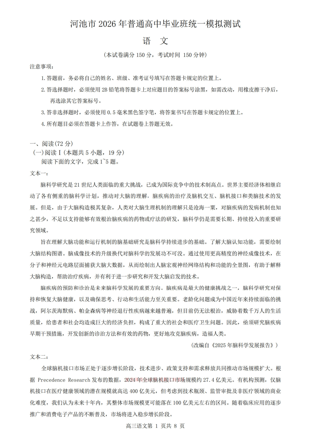 【河池二模】河池市2026年普通高中毕业班统一模拟测试答案