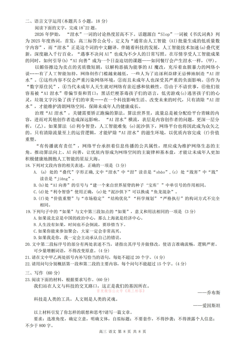 2026湖北新八校高三4月联考答案 2026湖北新八校高三4月联考答案