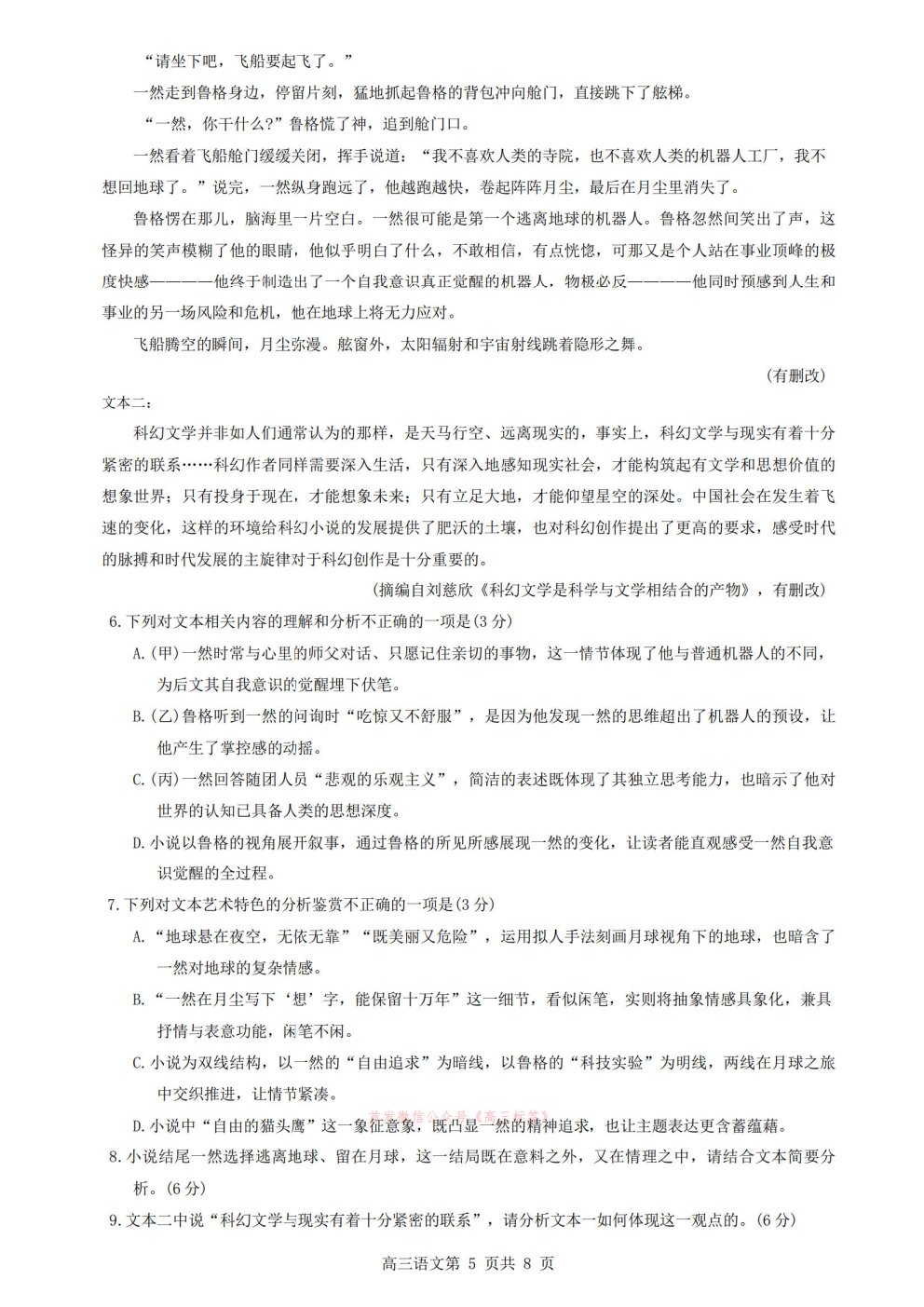 长沙市一中2026届高三月考试卷九答案 长沙市一中2026届高三月考试卷九答案