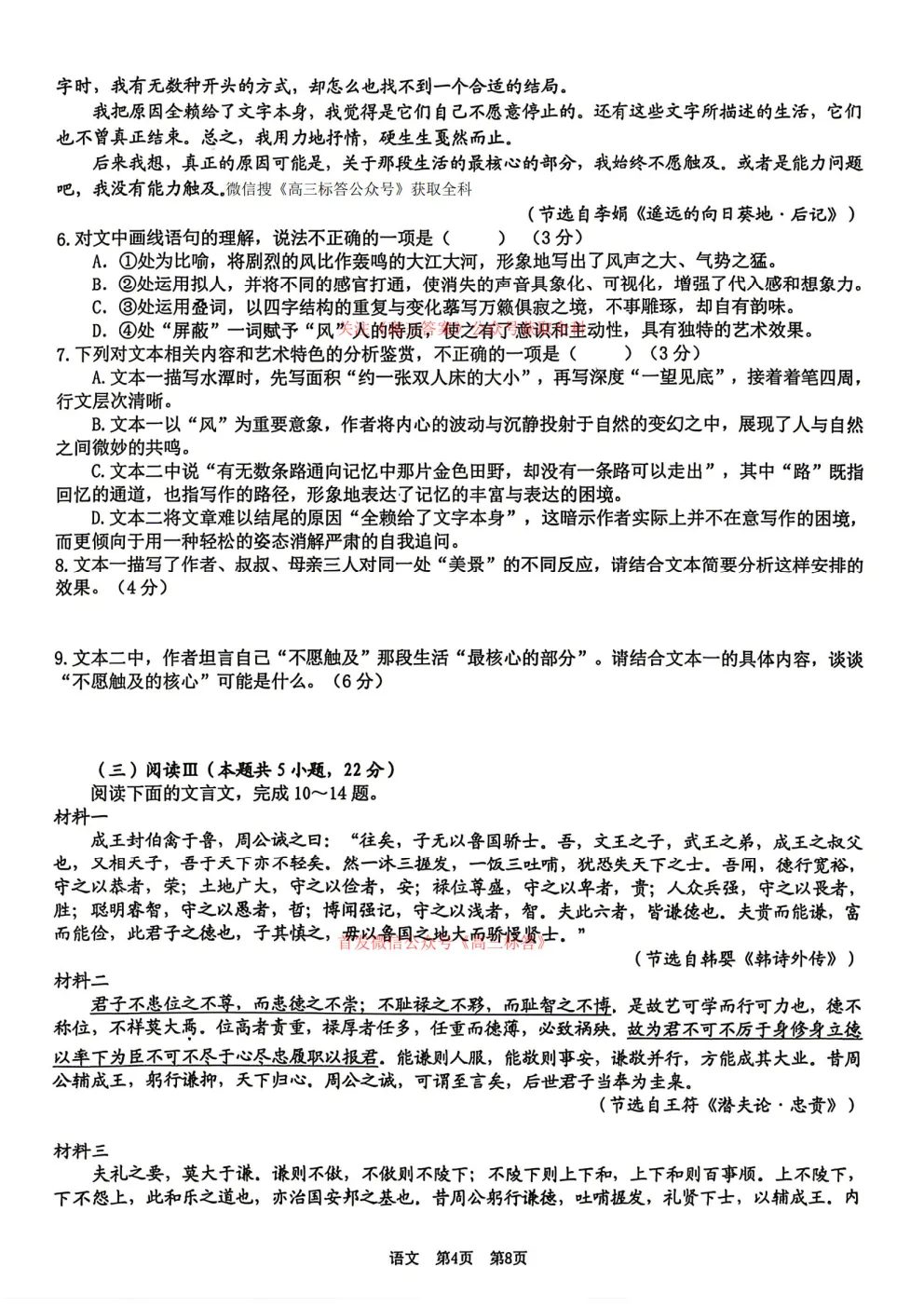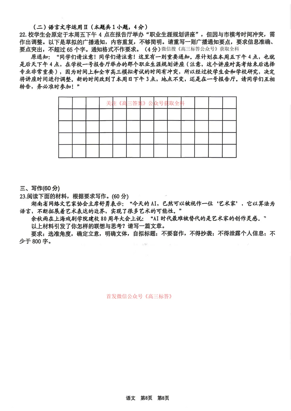金k卷2026届8省名师联合命制高考最后一卷答案 金k卷2026届8省名师联合命制高考最后一卷答案