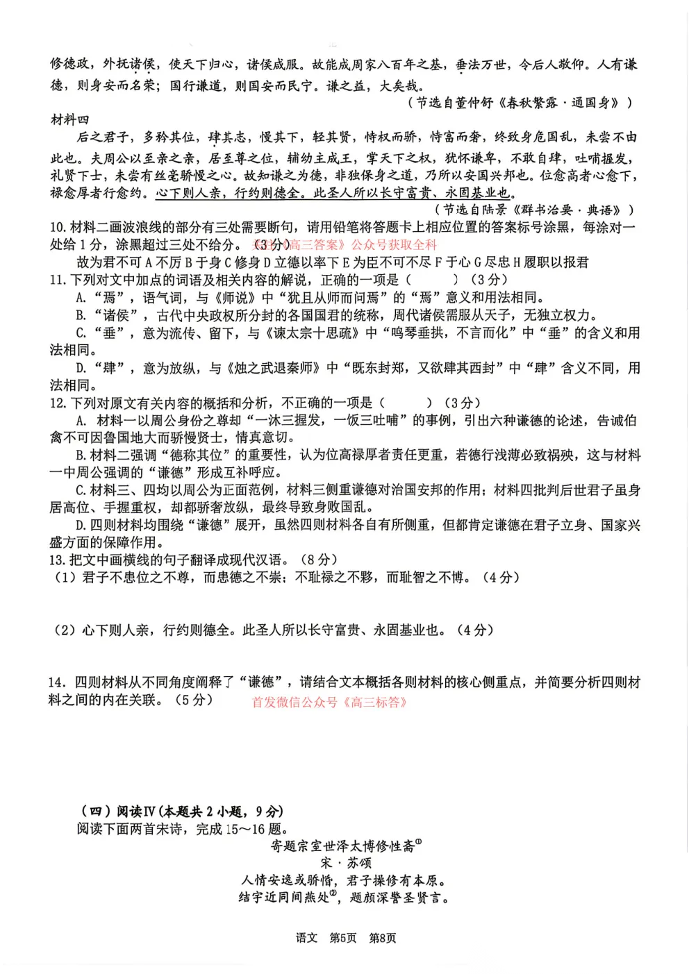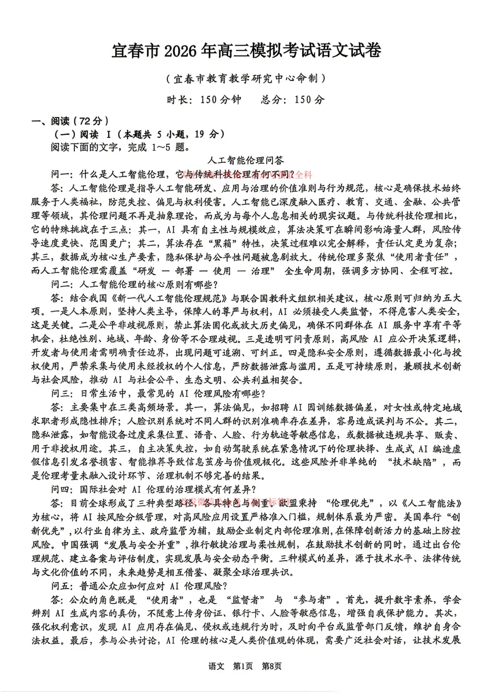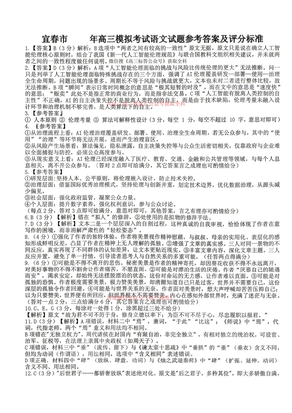 【宜春二模】宜春市2026年高三4月模拟考试全科下载
