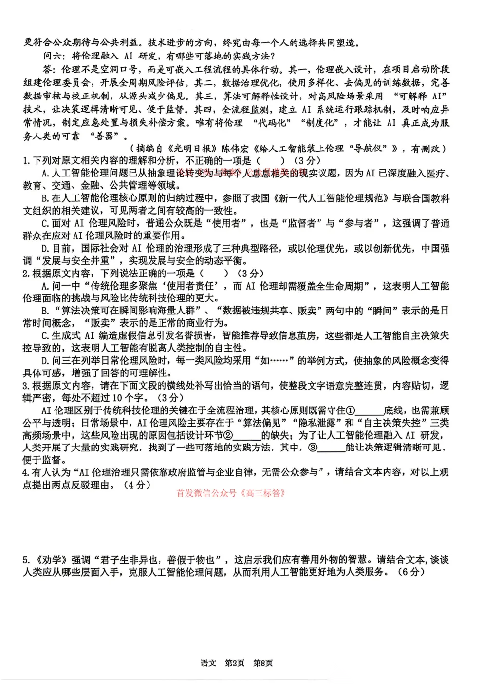 2026湖北新八校高三4月联考答案 2026湖北新八校高三4月联考答案