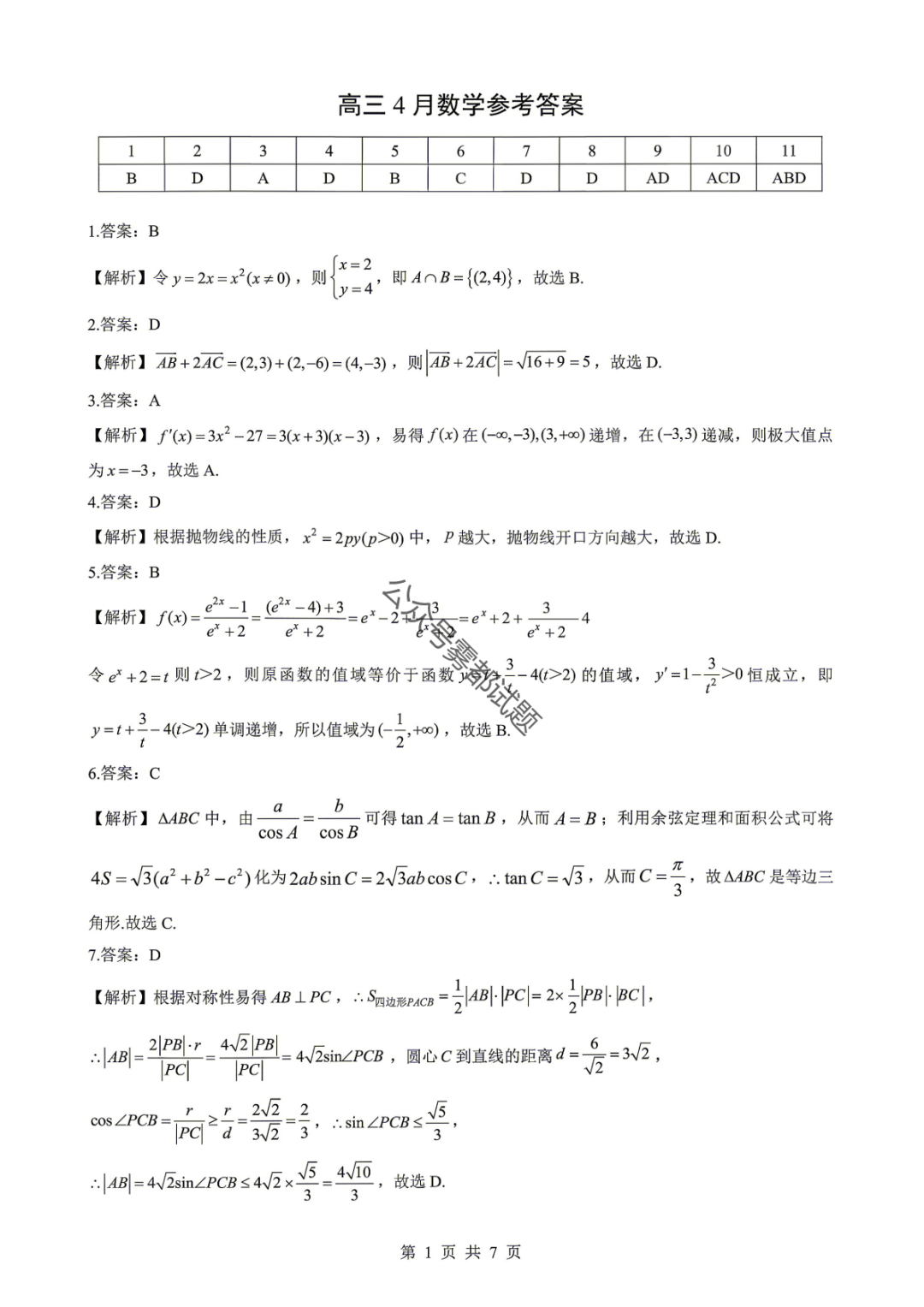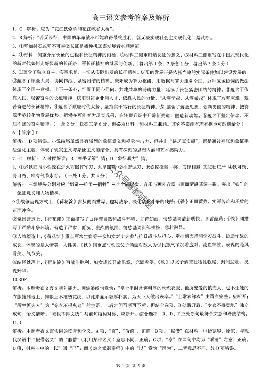 2026年全国高考仿真模拟卷一答案 2026年全国高考仿真模拟卷一答案