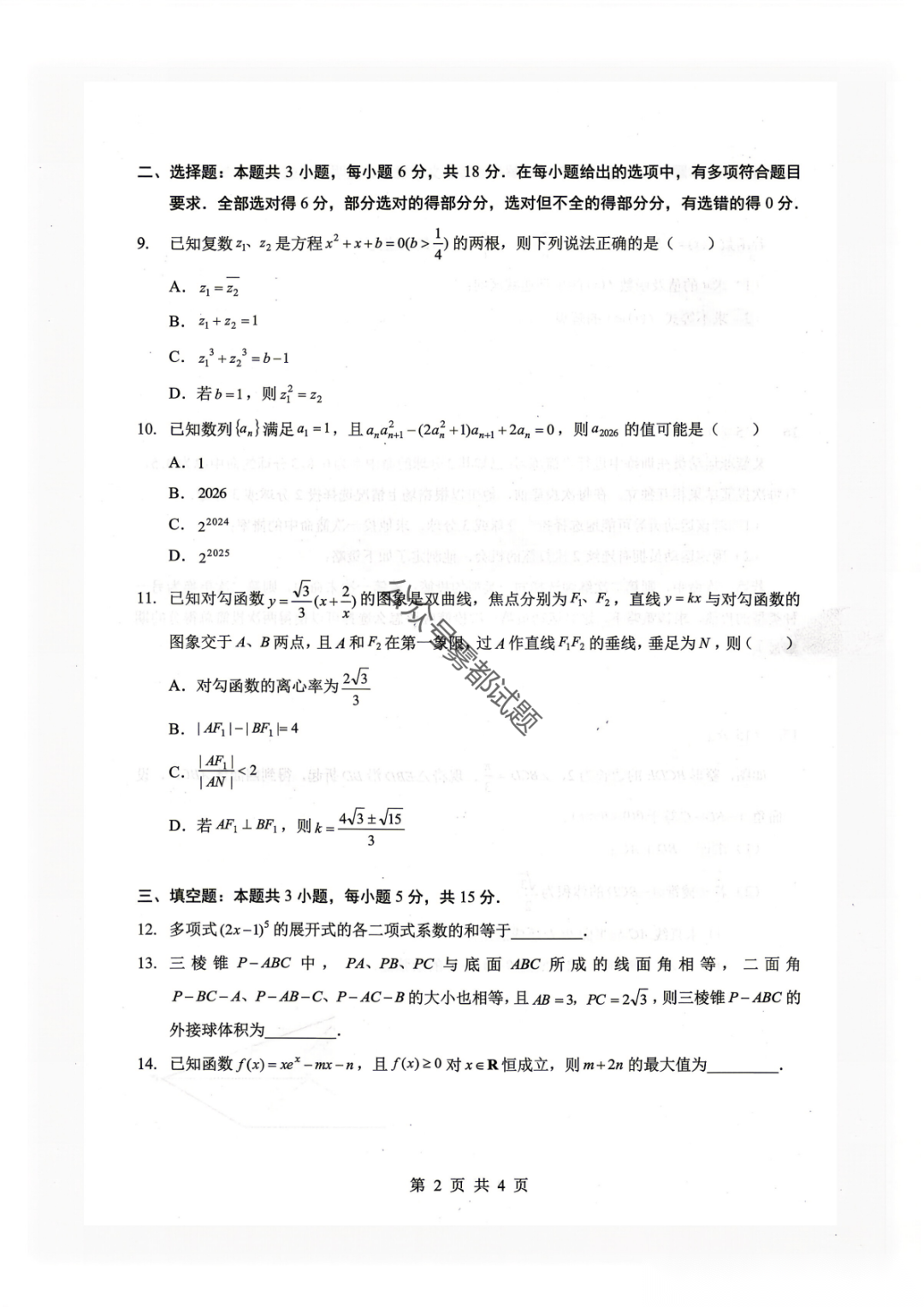 【宜春二模】宜春市2026年高三4月模拟考试全科下载 【宜春二模】宜春市2026年高三4月模拟考试全科下载