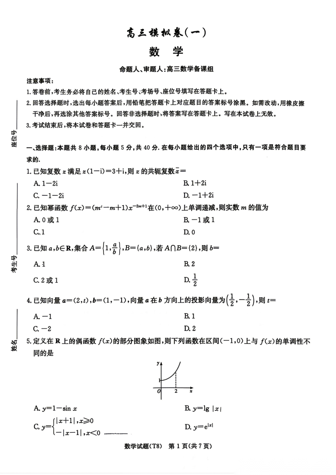 2026年全国高考仿真模拟卷一答案 2026年全国高考仿真模拟卷一答案