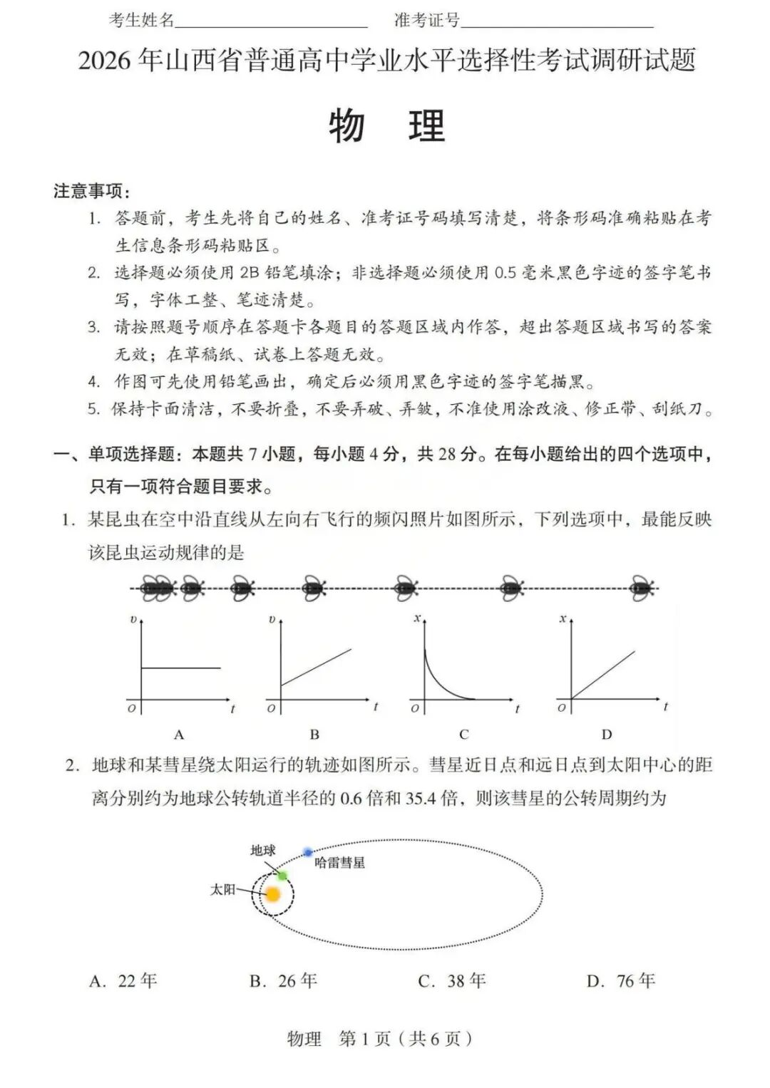 【全科】2026年山西省普通高中学业水平选择性考试调研试题