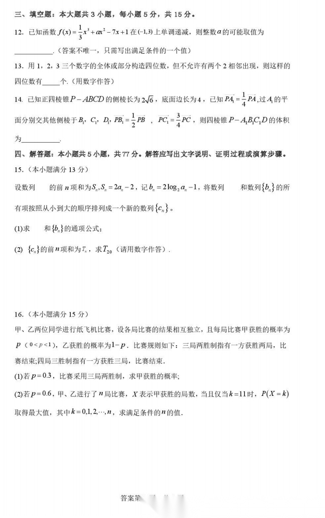 【全科】湖南师大附中2026届高三4月高考模拟考试(一) 【全科】湖南师大附中2026届高三4月高考模拟考试(一)