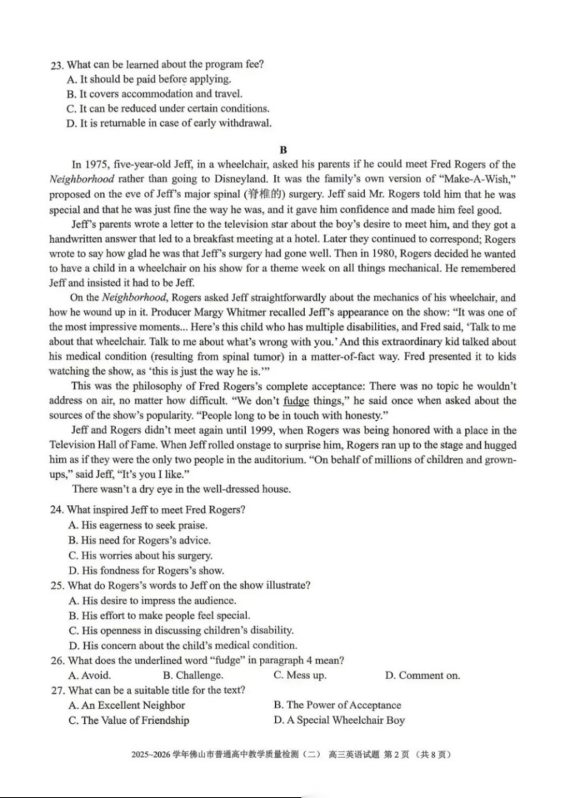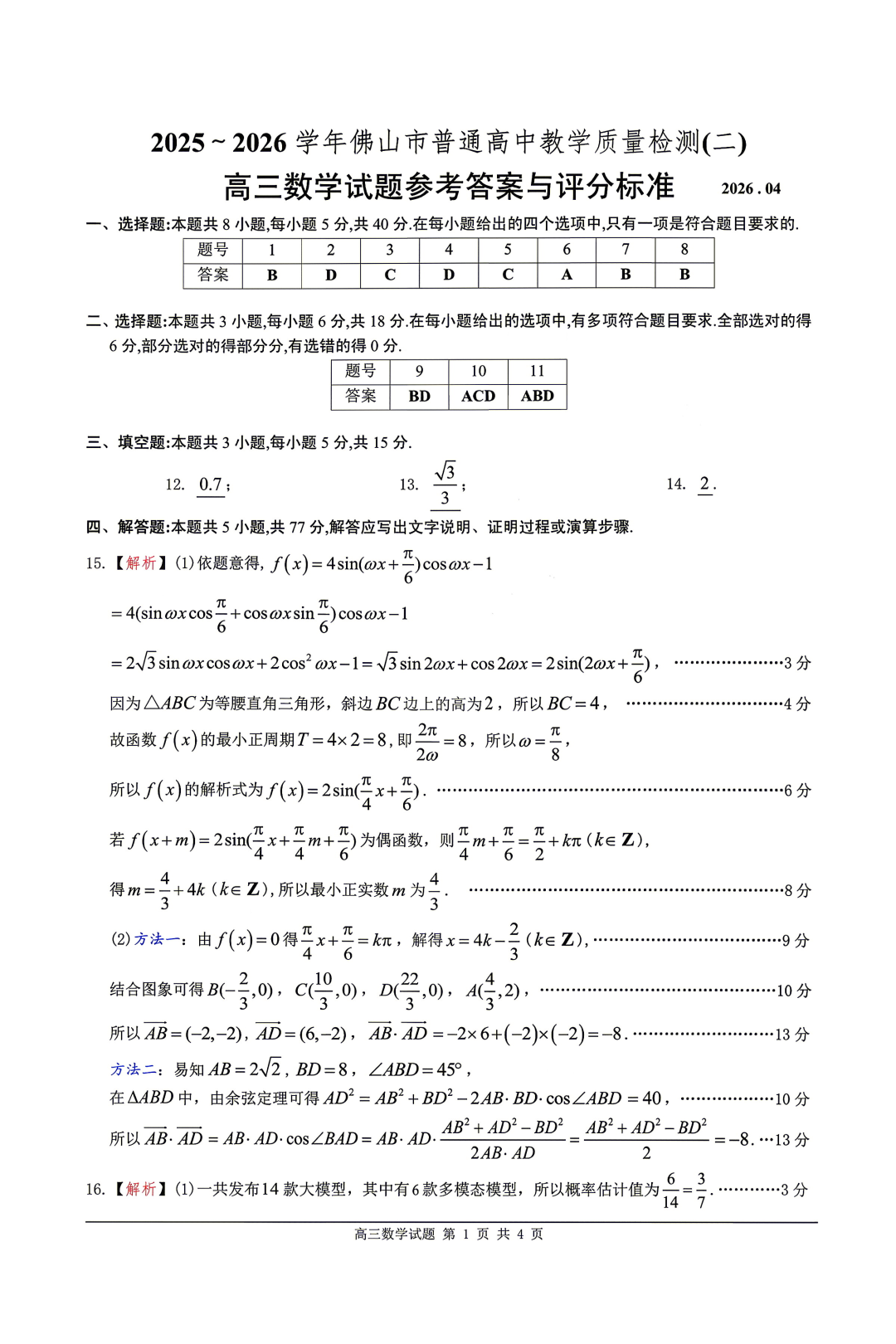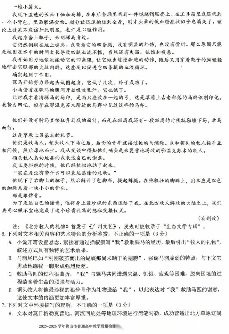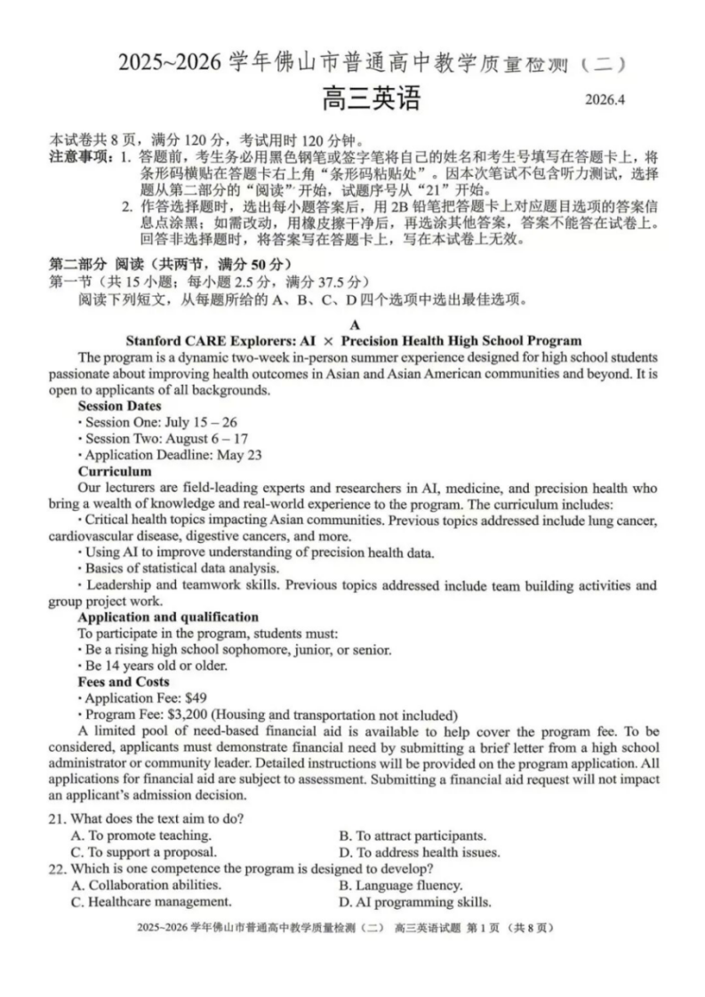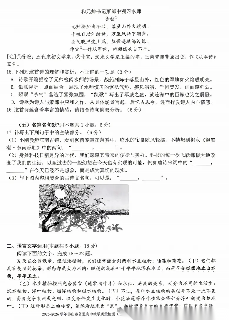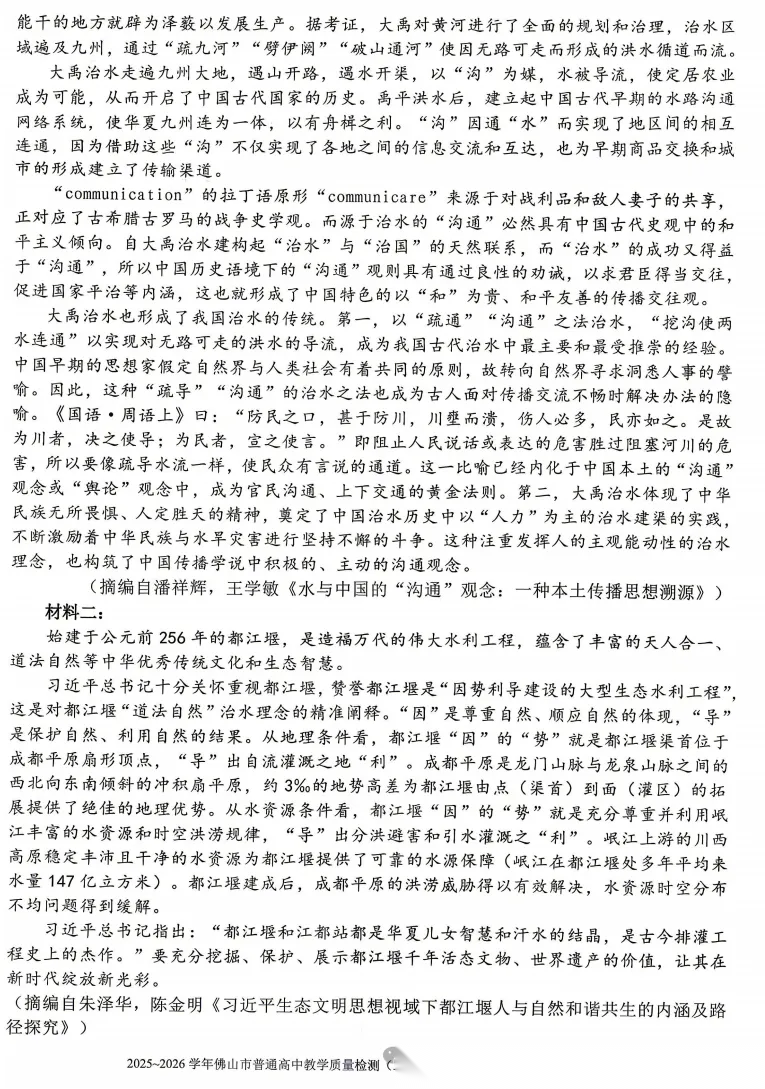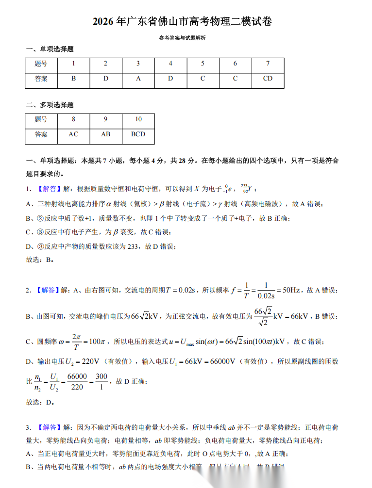 【广东卷】广东省佛山市2025-2026学年佛山市普通高中高三年级教学质量检测(二)(佛山二模)(4.13-4.15) 数学物理英语语文历史试题卷+答案