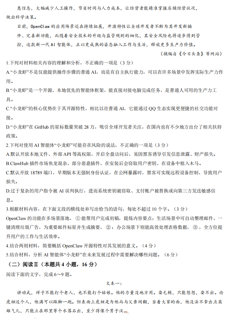【江西卷】江西省九江市2026年第二次高三年级高考模拟统一考试江西(九江二模)(4.14-416) 数学语文试题卷+答案 【江西卷】江西省九江市2026年第二次高三年级高考模拟统一考试江西(九江二模)(4.14-416) 数学语文试题卷...