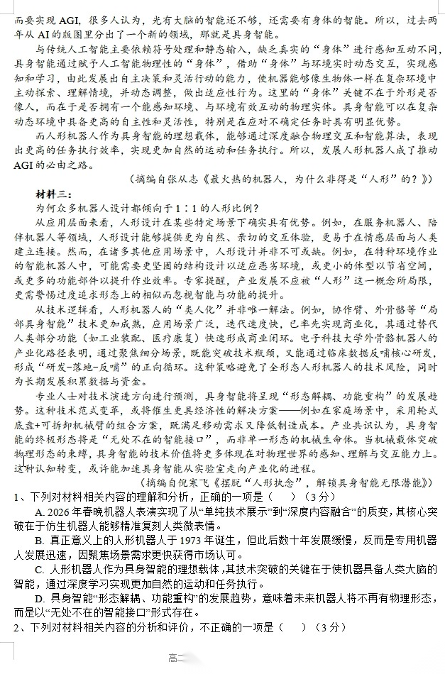 【安徽卷】安徽华师联盟2026届高三年级第二学期4月质量检测(4.9-410) 全科试题卷+答案 【安徽卷】安徽华师联盟2026届高三年级第二学期4月质量检测(4.9-410) 全科试题卷+答案