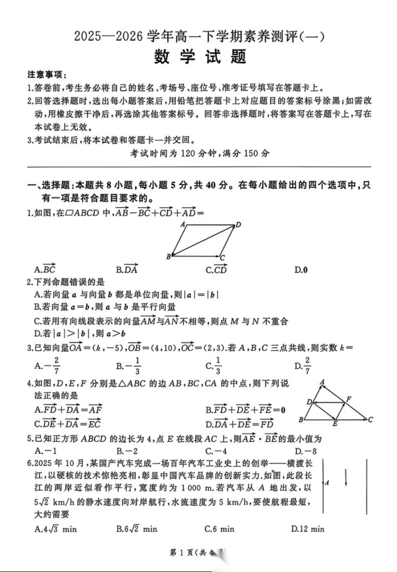 【福建卷】【高一】福建省三明市重点校(三明一中等校)2025-2026学年高一下学期4月月考(4.8-4.9) 全科试题卷+答案 【福建卷】【高一】福建省三明市重点校(三明一中等校)2025-2026学年高一下学期4月月考(4.8-4.9) ...