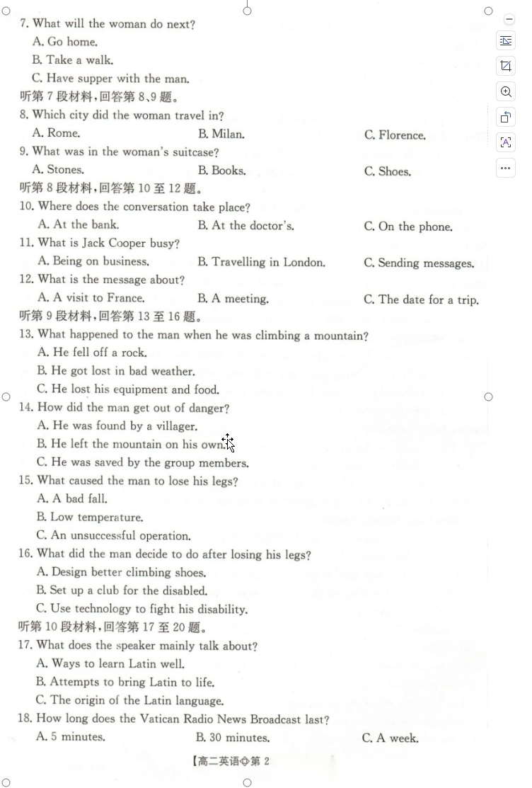 【河北卷】【高二】河北保定市名校定州市河北定州中学2025-2026学年高二下学期3月阶段检测(3月底) 全科试题卷(缺化学政治)+答案 【河北卷】【高二】河北保定市名校定州市河北定州中学2025-2026学年高二下学期3月阶段检测(3月底) 全科试题卷(缺...
