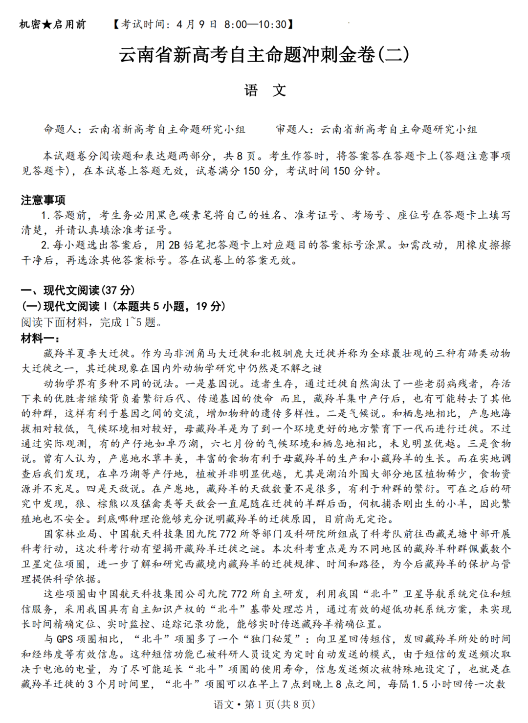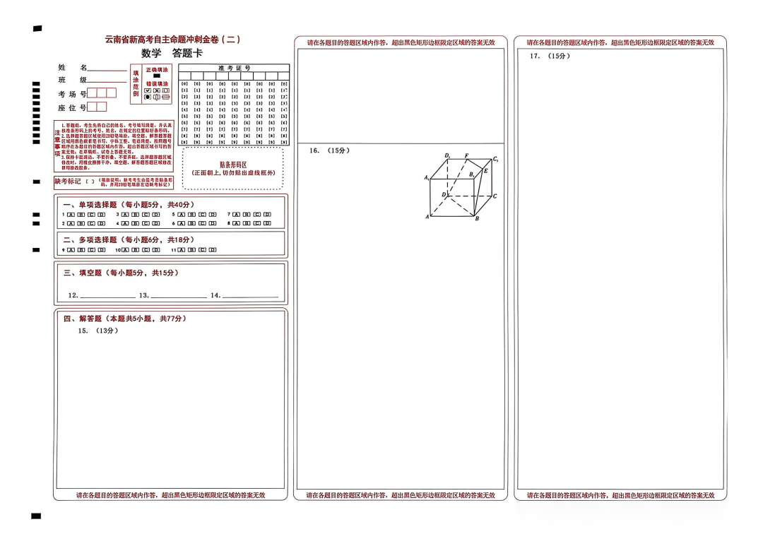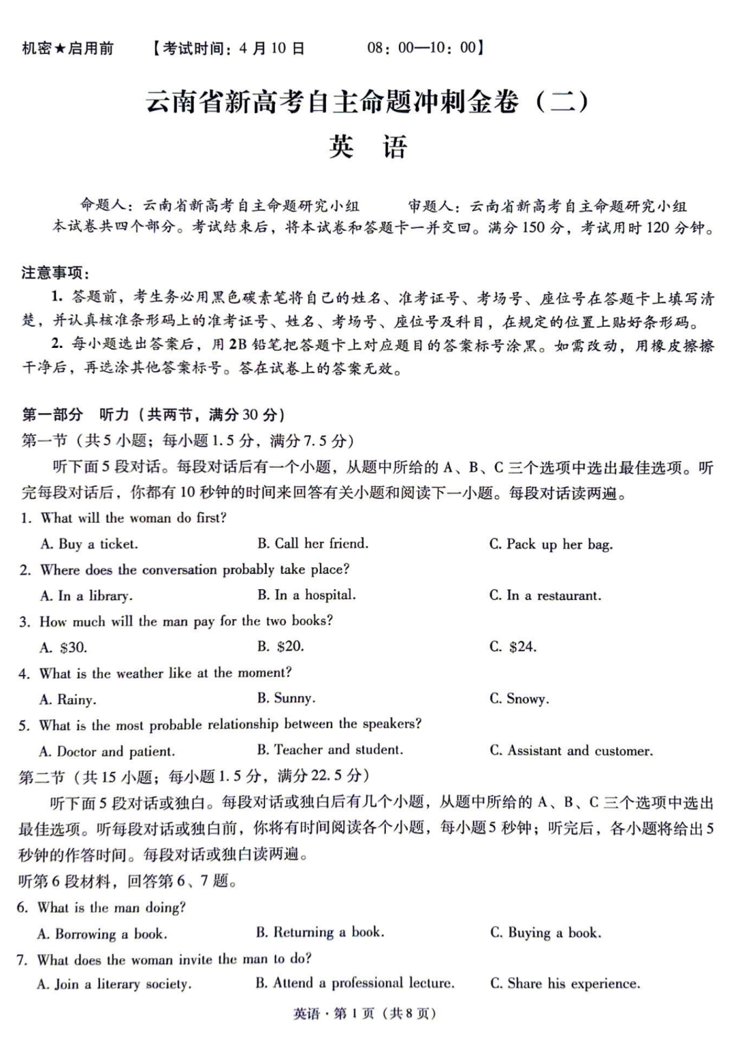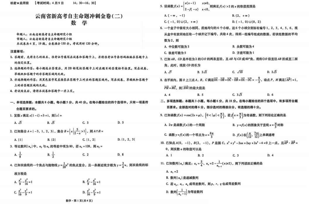 【云南卷】云南省新高考自主命题2026届高三年级4月份冲刺金卷(二)(4.9-4.10) 全科试题卷+答案