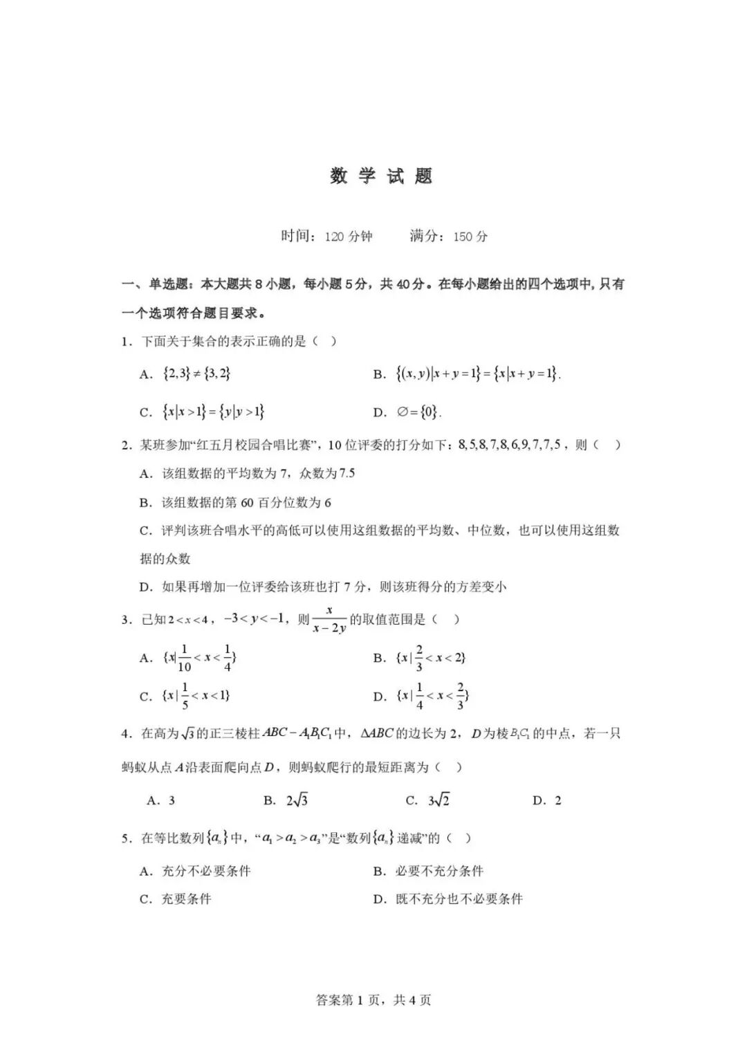 浙江省湖州、衢州、丽水2026年4月三地市高三教学质量检测 浙江省湖州、衢州、丽水2026年4月三地市高三教学质量检测