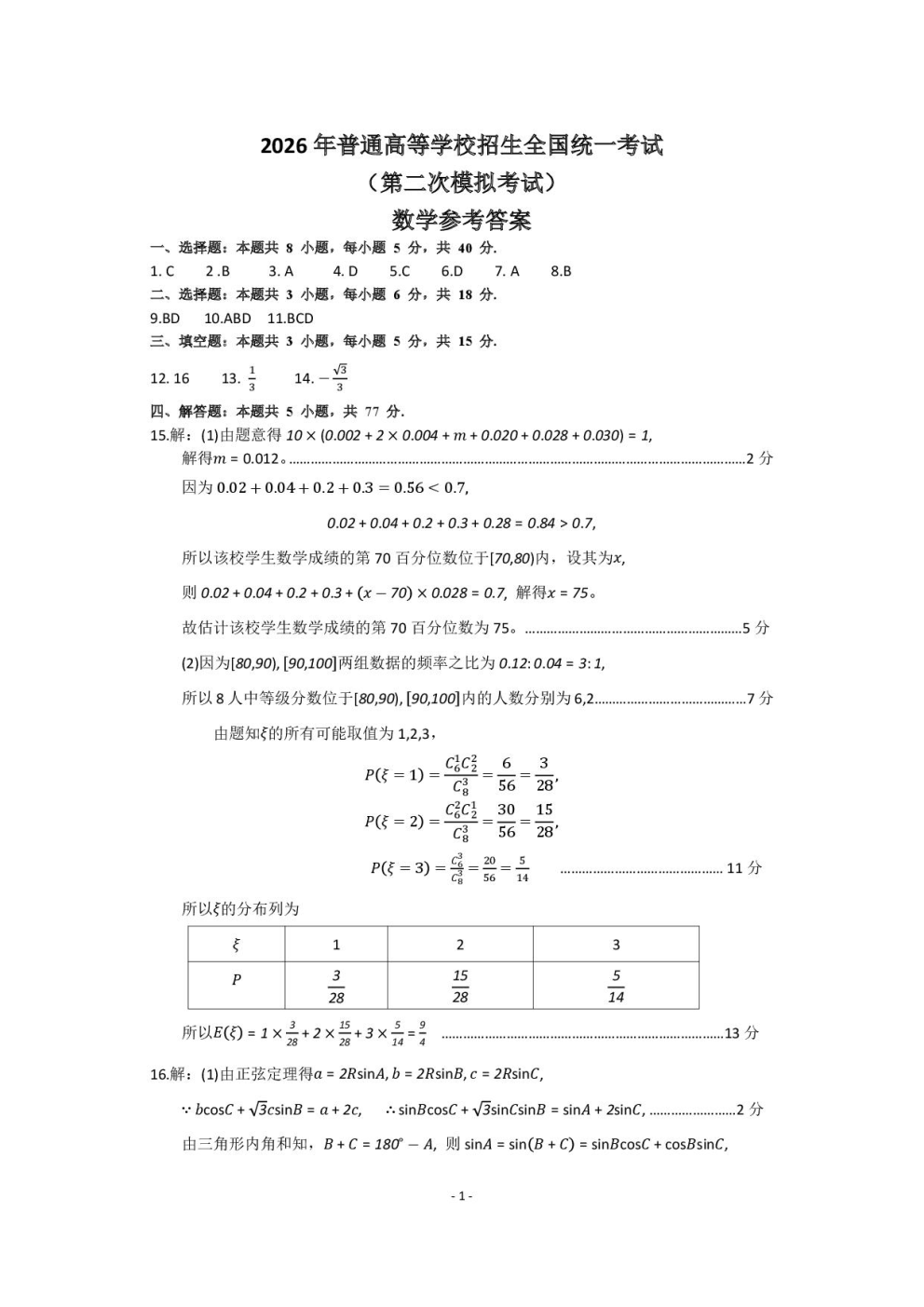 【济南二模】济南市2026届高三第二次模拟考试语文数学地理答案 【济南二模】济南市2026届高三第二次模拟考试语文数学地理答案