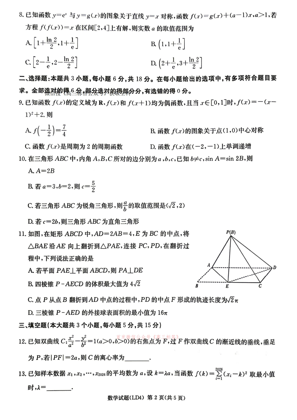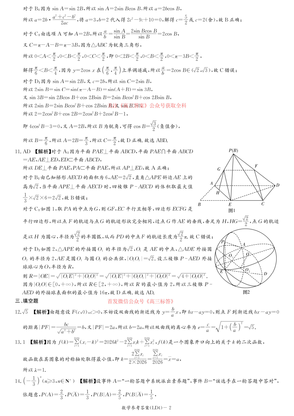 【茂名二模】2026年茂名市高三年级第二次综合测试答案 【茂名二模】2026年茂名市高三年级第二次综合测试答案