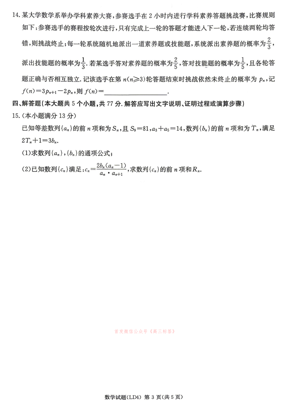 【大庆三模】大庆市2026届高三年级第三次教学质量检测答案 【大庆三模】大庆市2026届高三年级第三次教学质量检测答案