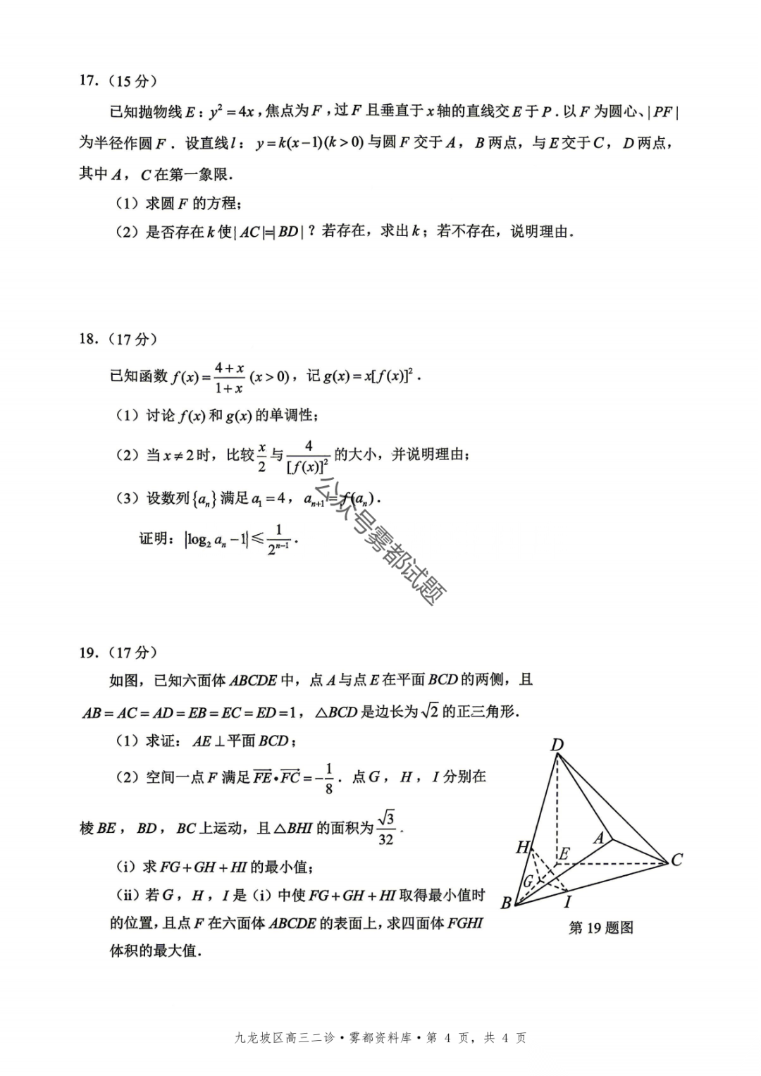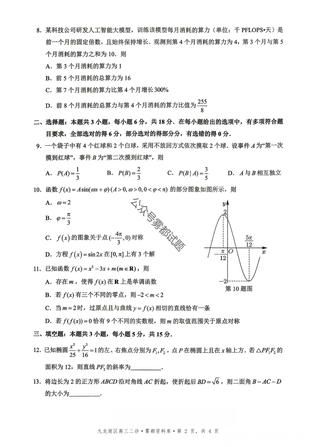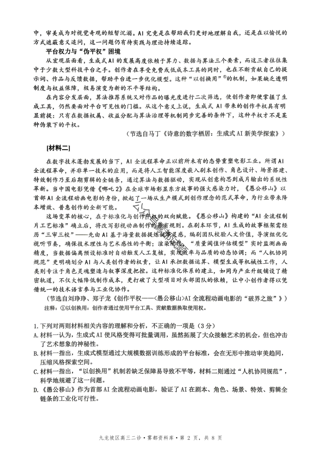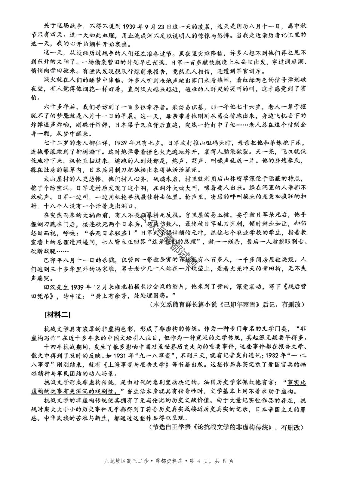重庆九龙坡等五区高2026届学业质量调研抽测(第二次)语文、数学试题