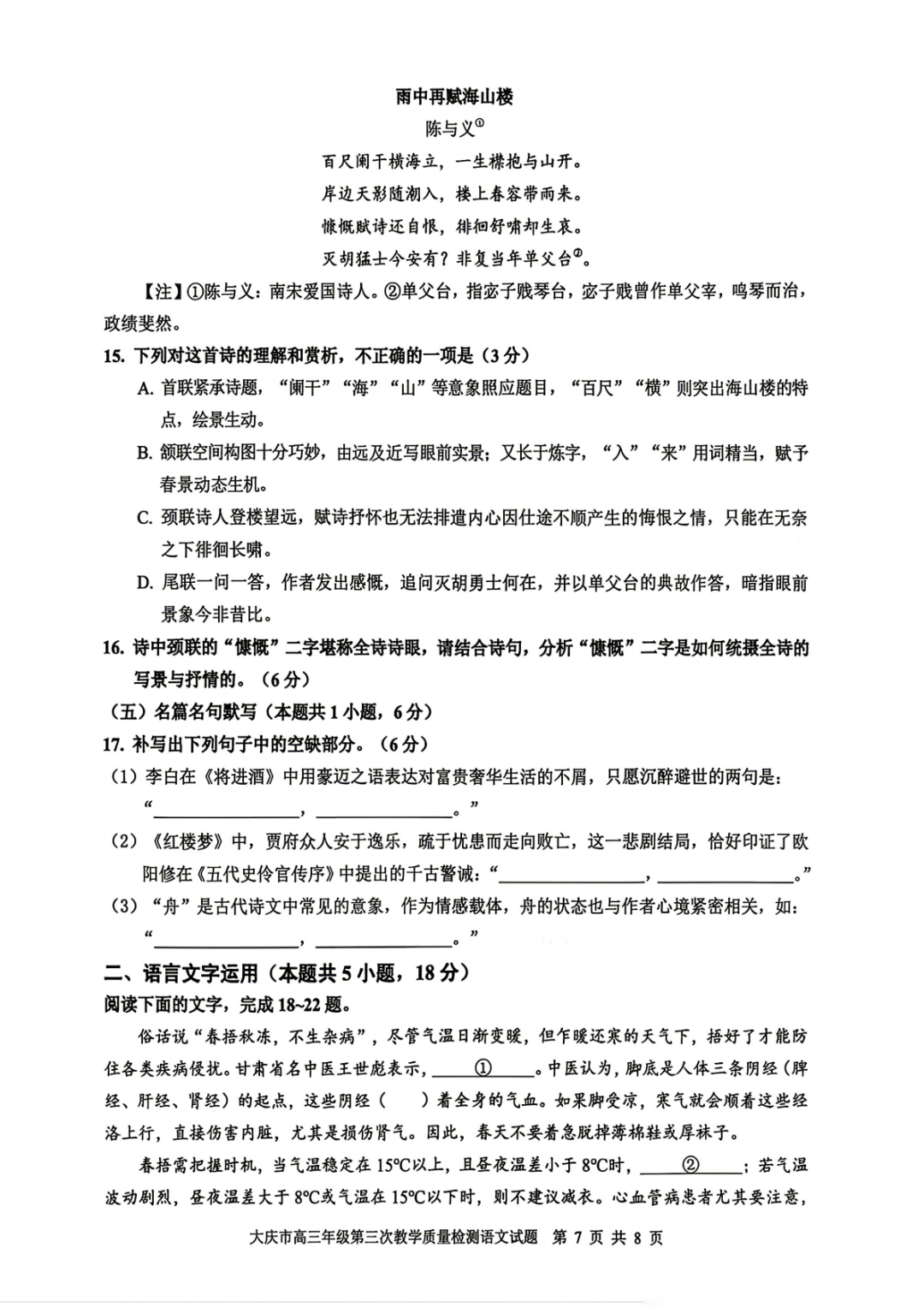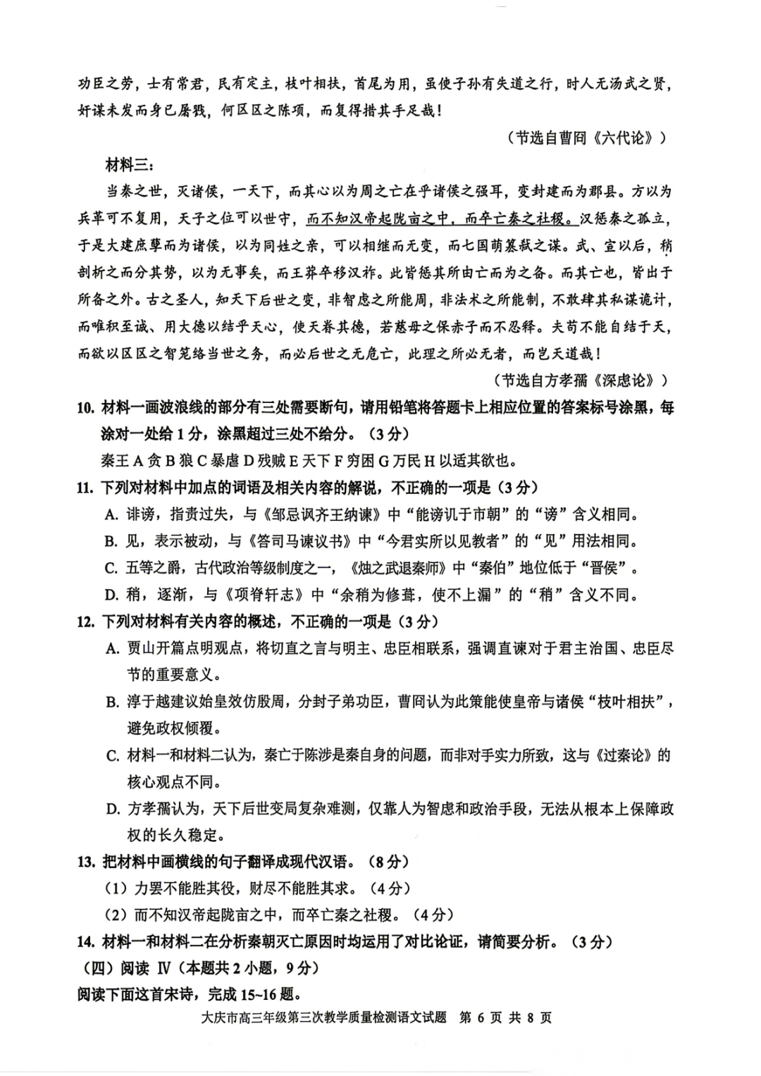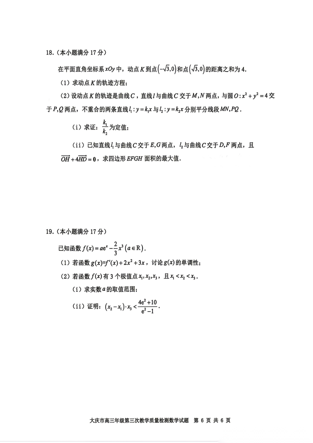 【大庆三模】黑龙江省大庆市2026届高三年级第三次教学质量检测试题答案
