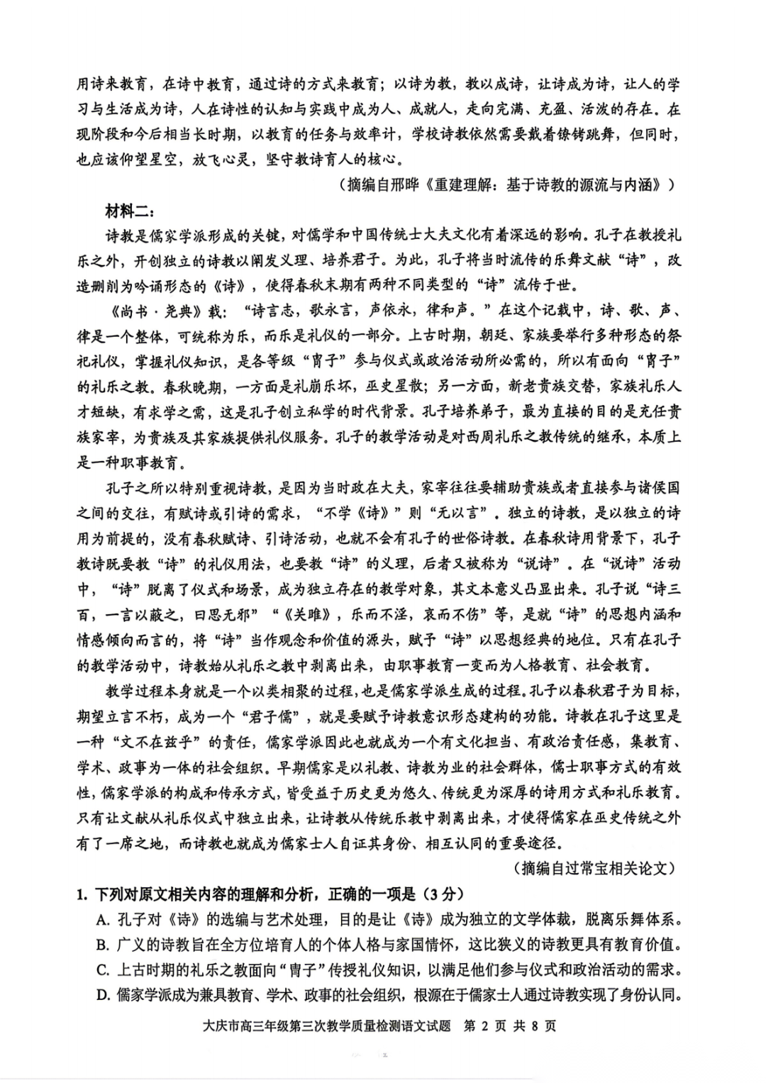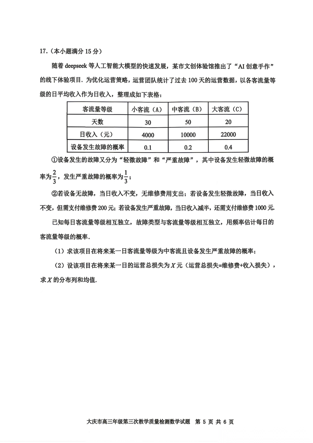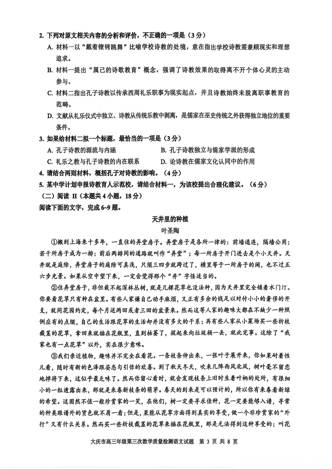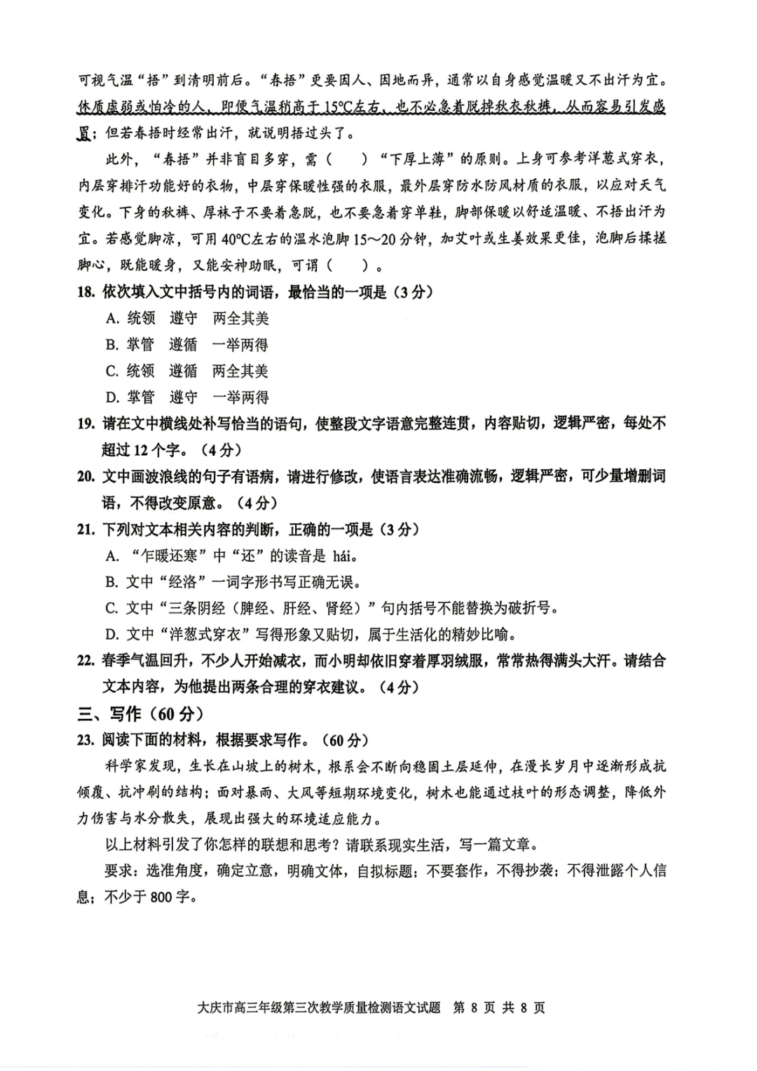 【大庆三模】黑龙江省大庆市2026届高三年级第三次教学质量检测试题答案