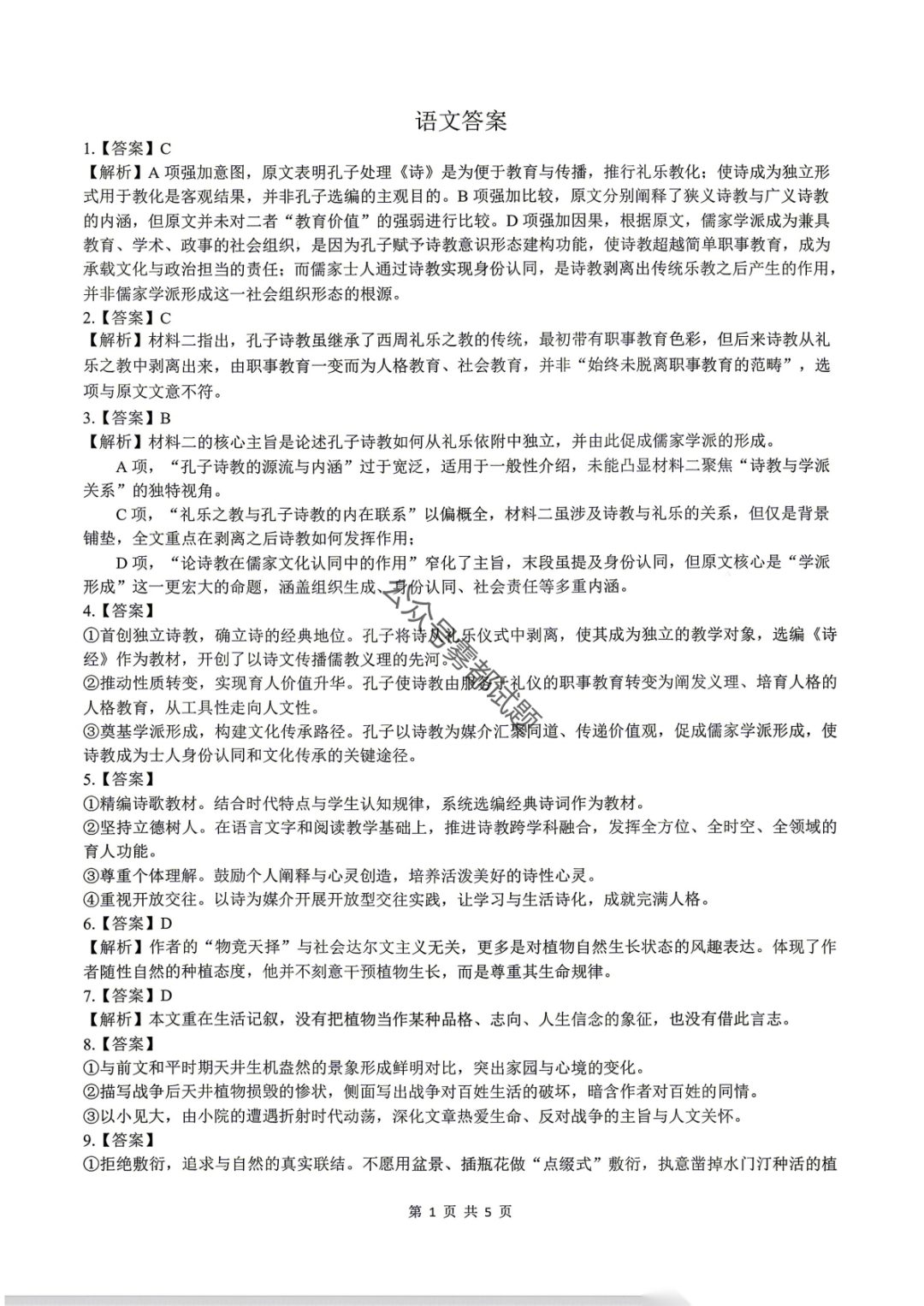 重庆九龙坡等五区高2026届学业质量调研抽测(第二次)语文、数学试题 重庆九龙坡等五区高2026届学业质量调研抽测(第二次)语文、数学试题