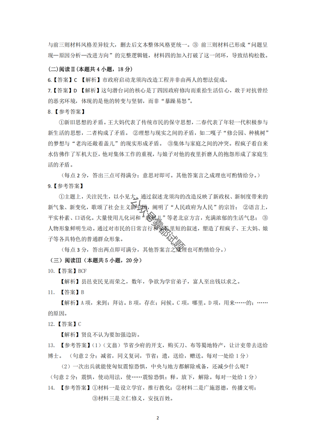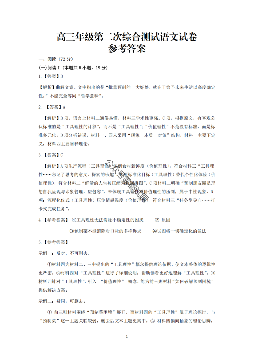【运城二模】运城市2026年4月高考考前适应性测试答案 【运城二模】运城市2026年4月高考考前适应性测试答案