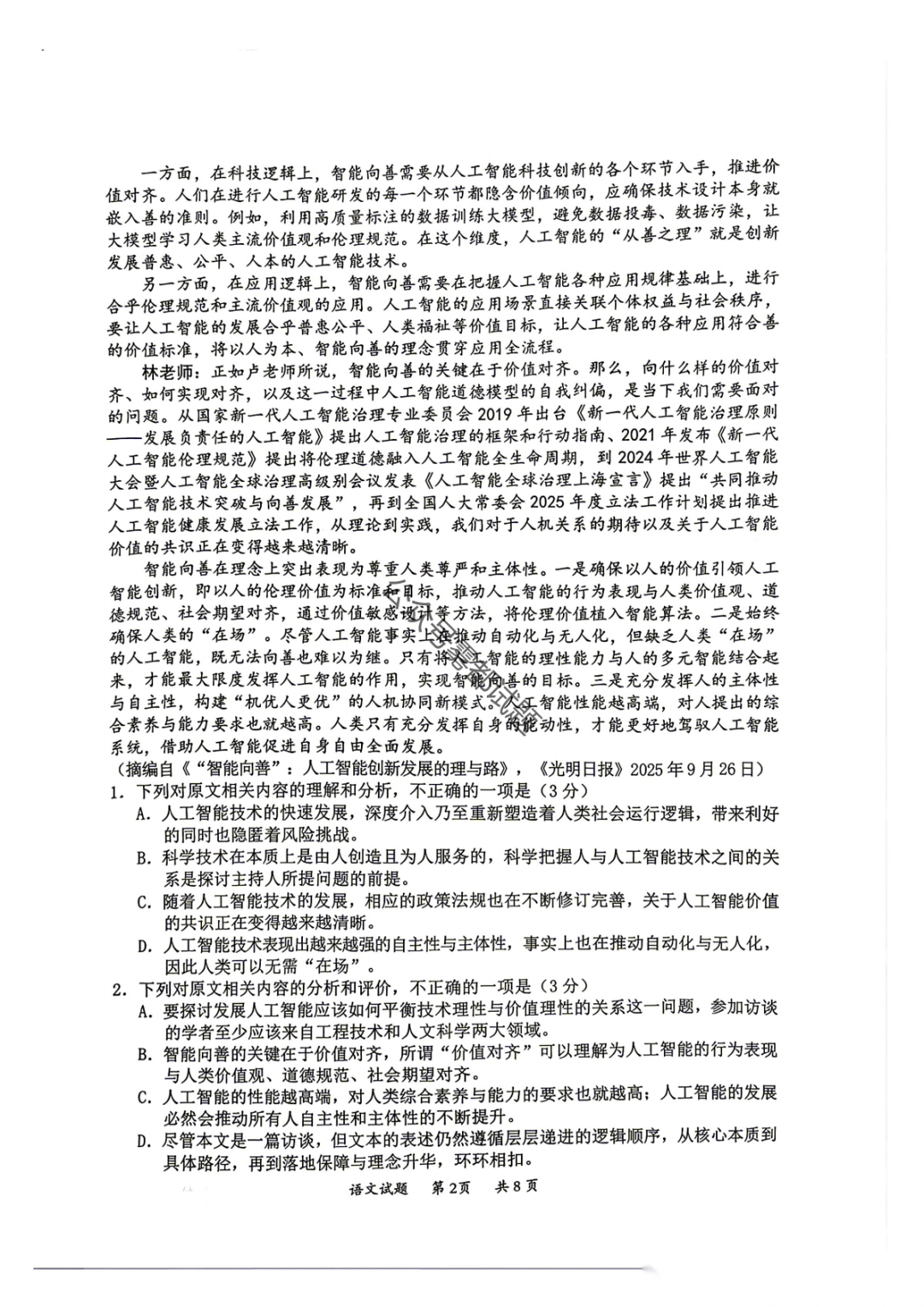 【包头二模】2026年普通高等学校招生全国统一考试(第二次模拟考试)语文数学试题 【包头二模】2026年普通高等学校招生全国统一考试(第二次模拟考试)语文数学试题