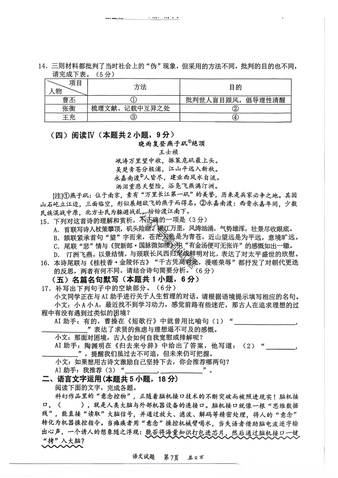 重庆九龙坡等五区高2026届学业质量调研抽测(第二次)语文、数学试题 重庆九龙坡等五区高2026届学业质量调研抽测(第二次)语文、数学试题
