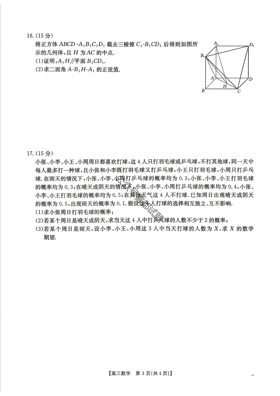 【大庆三模】黑龙江省大庆市2026届高三年级第三次教学质量检测试题答案 【大庆三模】黑龙江省大庆市2026届高三年级第三次教学质量检测试题答案
