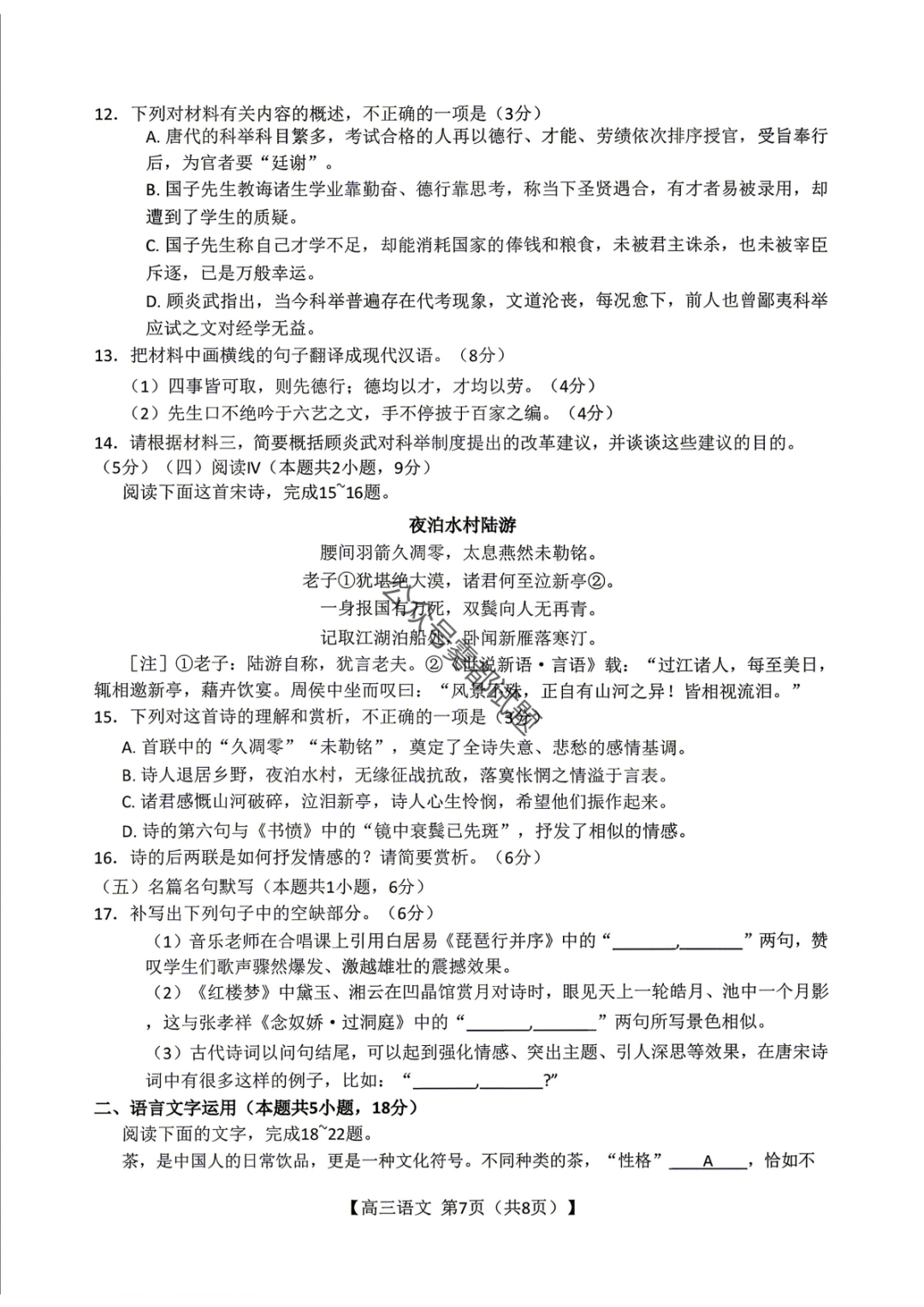 重庆九龙坡等五区高2026届学业质量调研抽测(第二次)语文、数学试题 重庆九龙坡等五区高2026届学业质量调研抽测(第二次)语文、数学试题