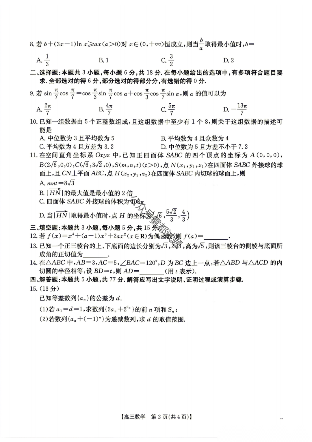 【茂名二模】2026年广东省茂名市高三年级第二次综合测试试题答案 【茂名二模】2026年广东省茂名市高三年级第二次综合测试试题答案
