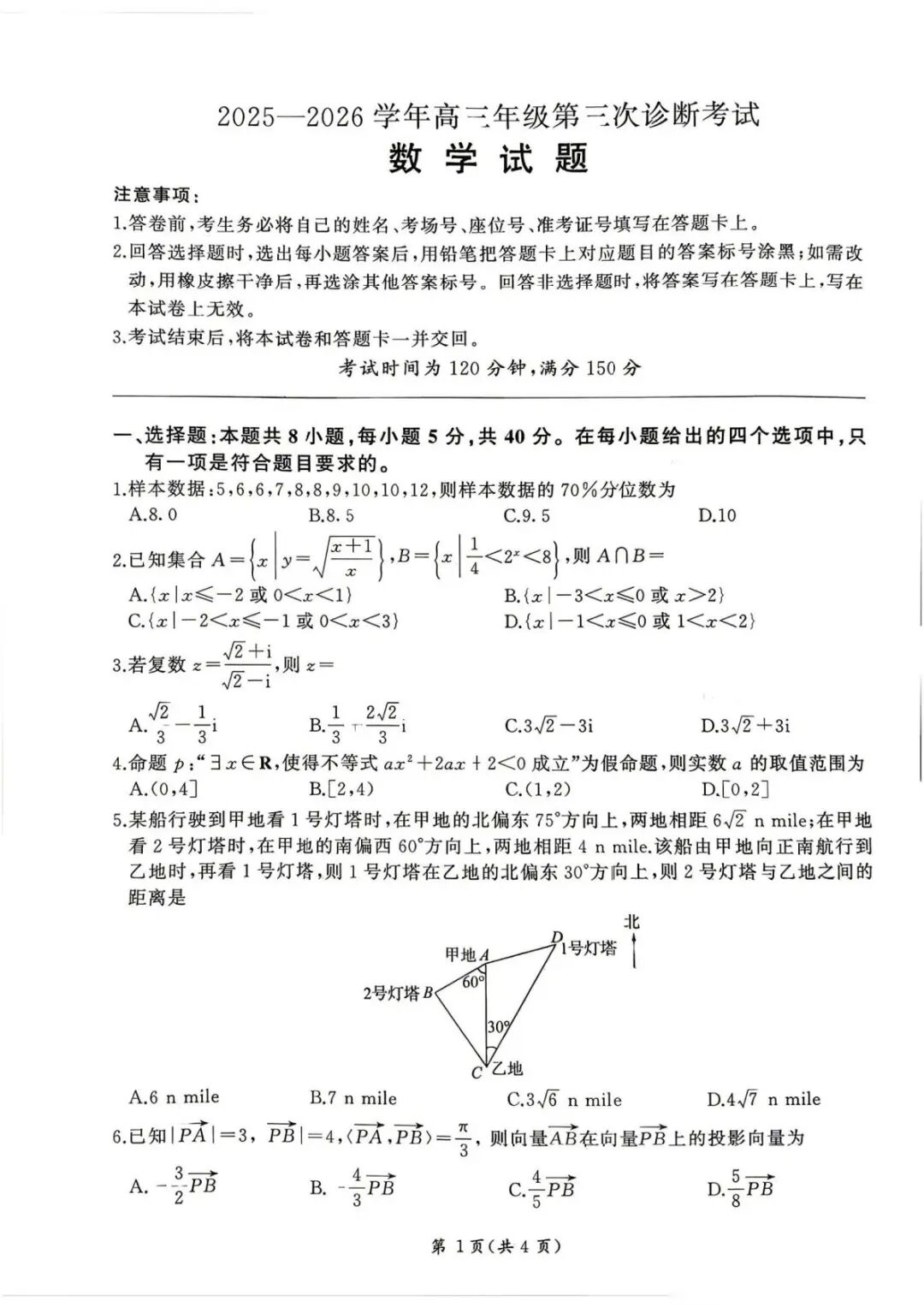 2025-2026学年甘肃高三三诊断考试【甘肃三诊】
