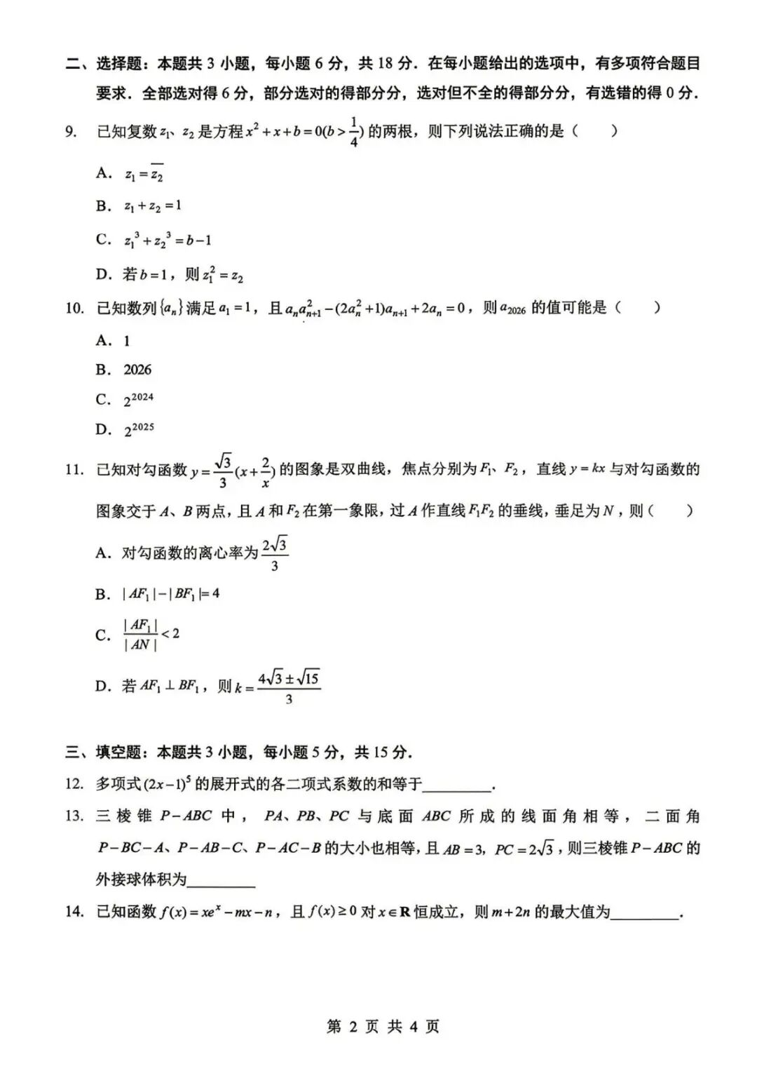 【茂名二模】2026年广东省茂名市高三年级第二次综合测试试题答案 【茂名二模】2026年广东省茂名市高三年级第二次综合测试试题答案