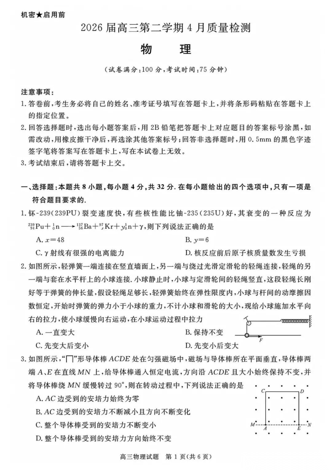 2026年4月湖北新八校高三联考检测试卷 2026年4月湖北新八校高三联考检测试卷