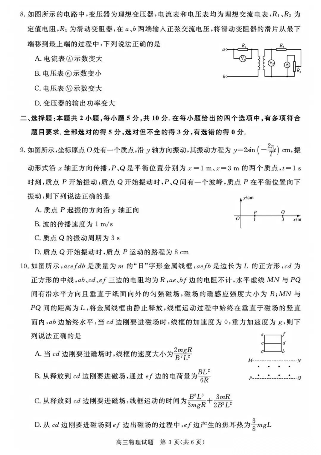 2025-2026学年甘肃高三三诊断考试【甘肃三诊】 2025-2026学年甘肃高三三诊断考试【甘肃三诊】