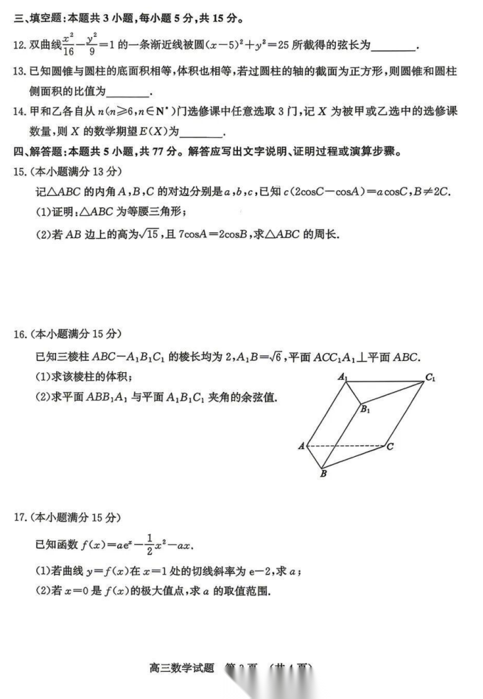 安徽华师联盟2026届高三第二学期4月质量检测 安徽华师联盟2026届高三第二学期4月质量检测