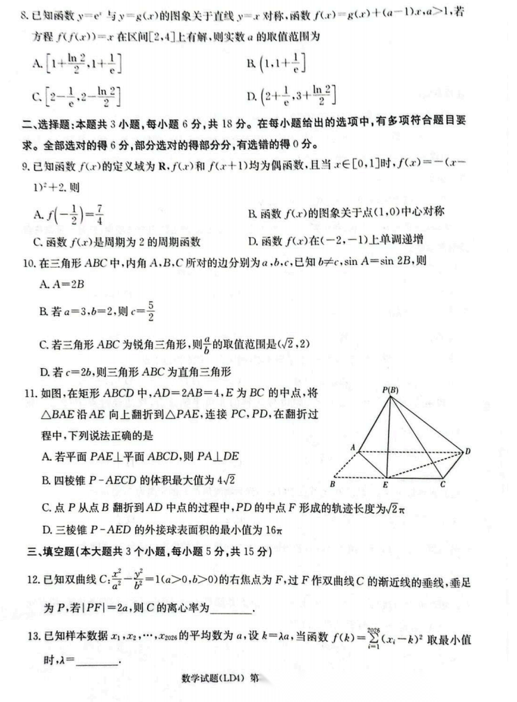 【四川卷】四川省达州市普通高中2026届高三年级第二次诊断测试(达州二诊)(4.14-4.16) 数学语文试题卷 【四川卷】四川省达州市普通高中2026届高三年级第二次诊断测试(达州二诊)(4.14-4.16) ...