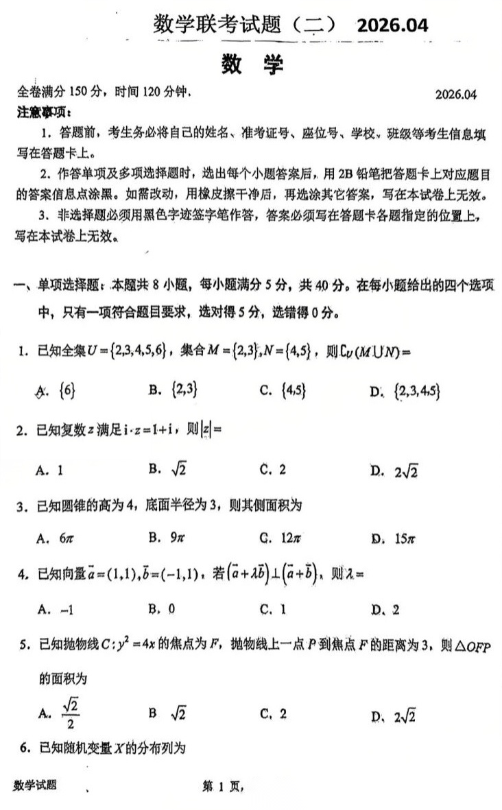 【西北卷】【山西卷】山西省运城市 2026年高三年级高考考前适应性测试(运城二模)(4.15-4.17) 数学语文试题卷+答案 【西北卷】【山西卷】山西省运城市 2026年高三年级高考考前适应性测试(运城二模)(4.15-4.17) 数学...