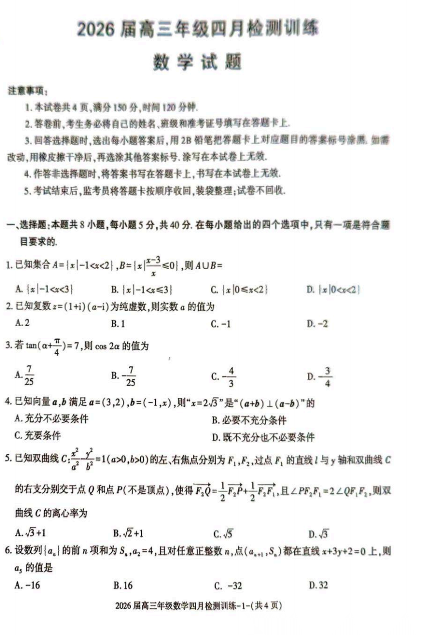 【黑吉辽蒙卷】大庆市2026届高三年级第三次教学质量检测(大庆三模)(4.15-4.17) 数学语文试题卷+答案 【黑吉辽蒙卷】大庆市2026届高三年级第三次教学质量检测(大庆三模)(4.15-4.17) 数学...