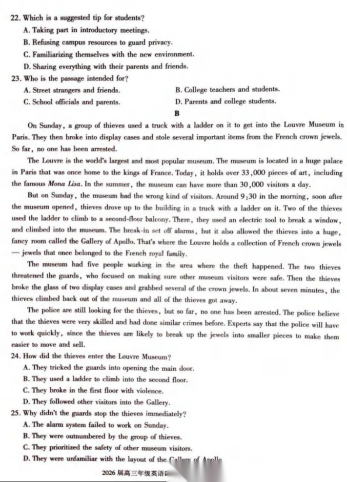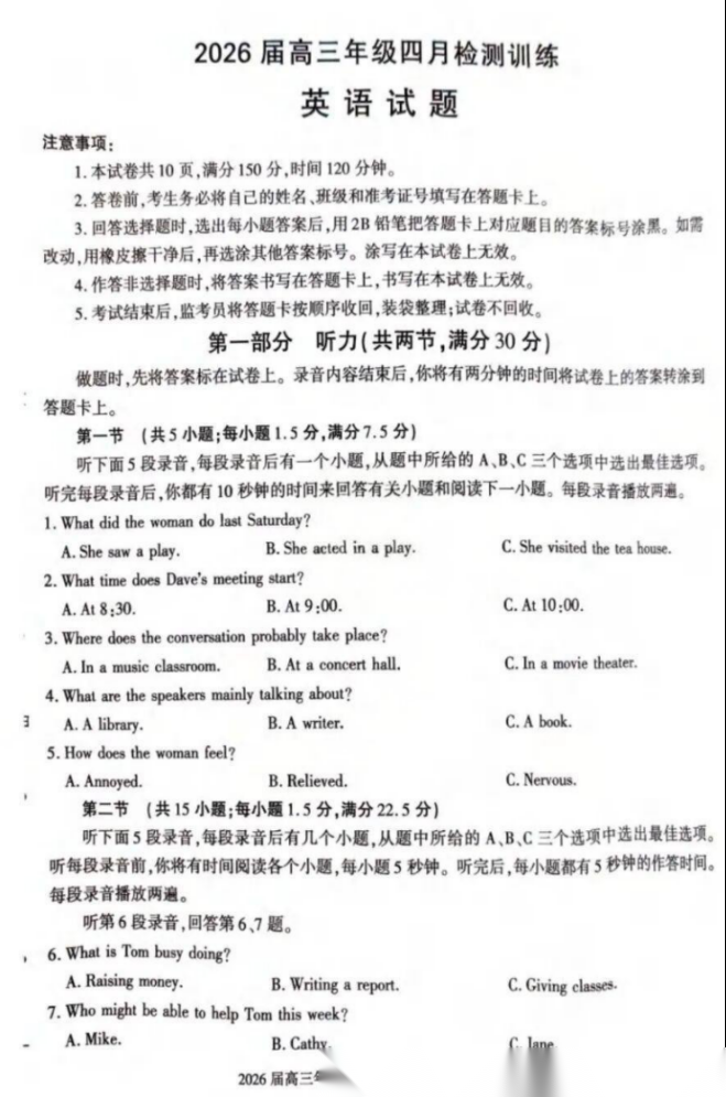 【西北卷】【陕西卷】陕西省榆林市2026届高三年级四月检测训练(4月初) 数学物理英语语文历史政治试题卷+答案