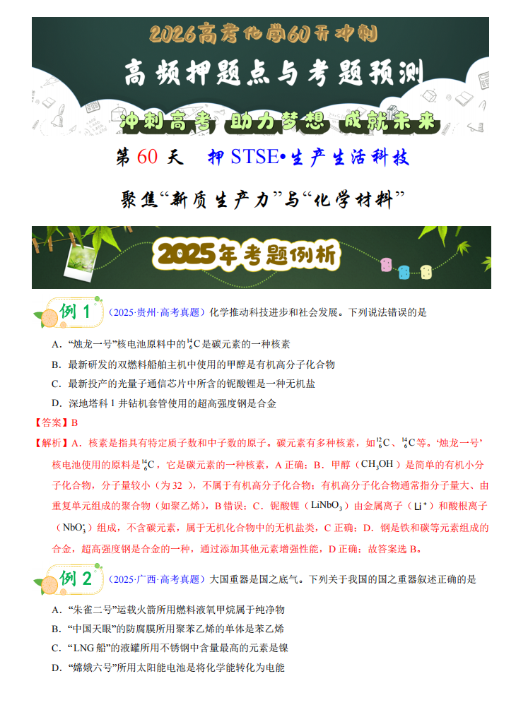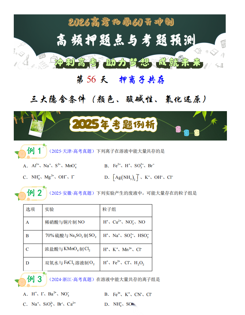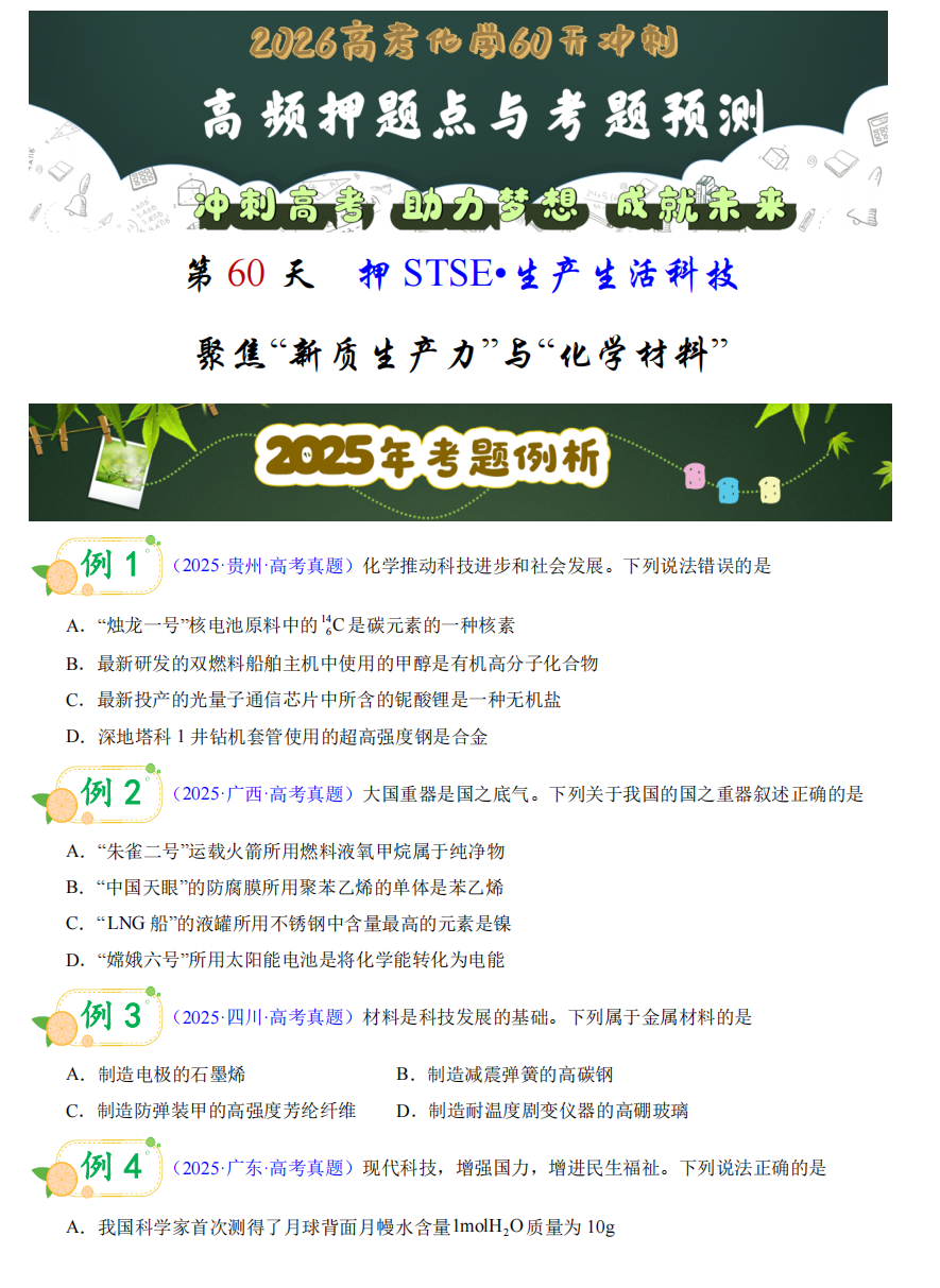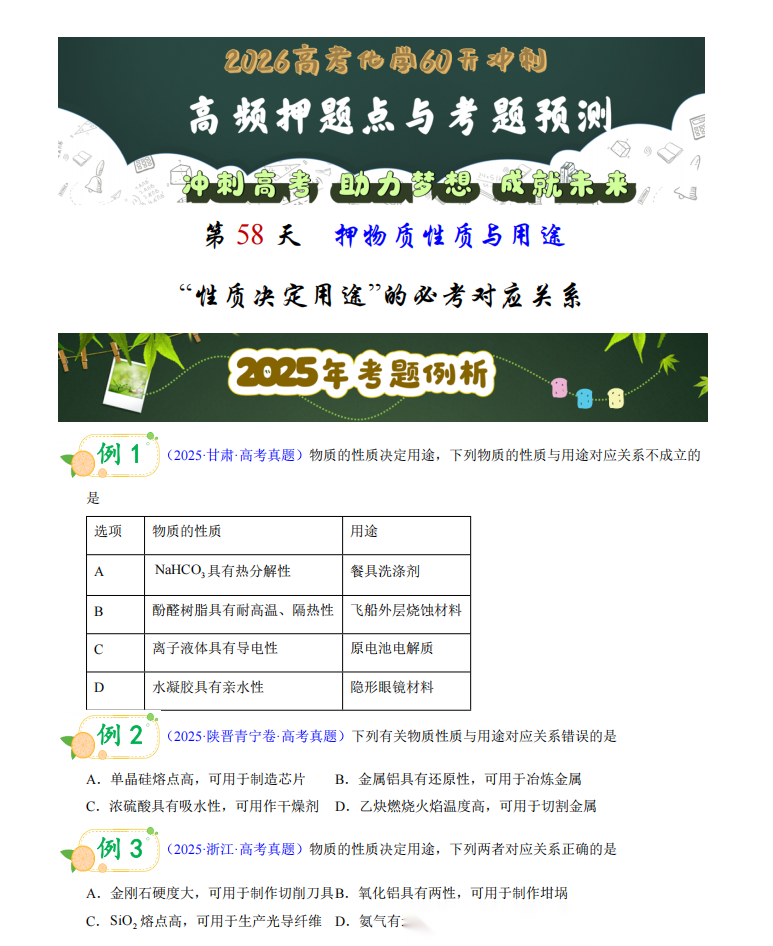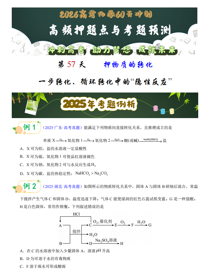 【高考化学】【冲刺·高频押题】2026年高考化学最后60天冲刺·高考化学高频押题点与考题预测(全国通用)学生版+解析版(完整版)(持续更新)