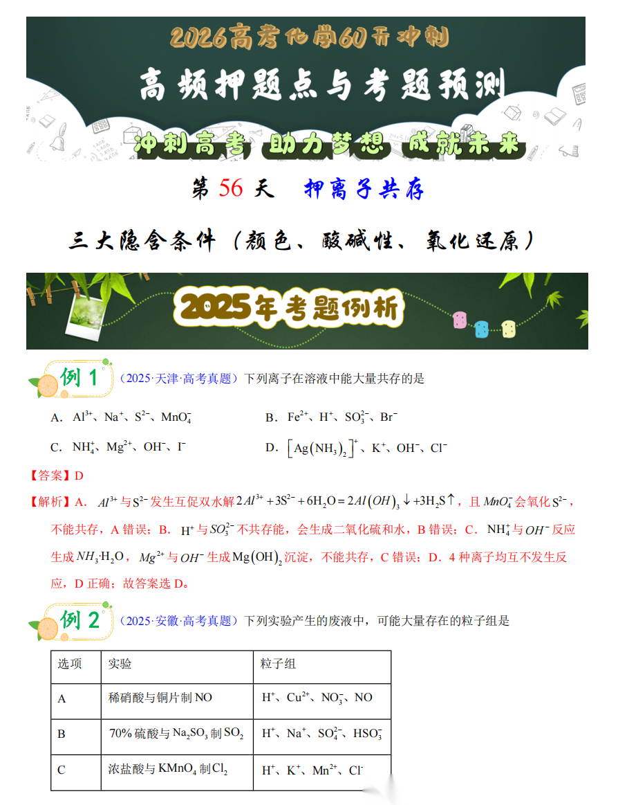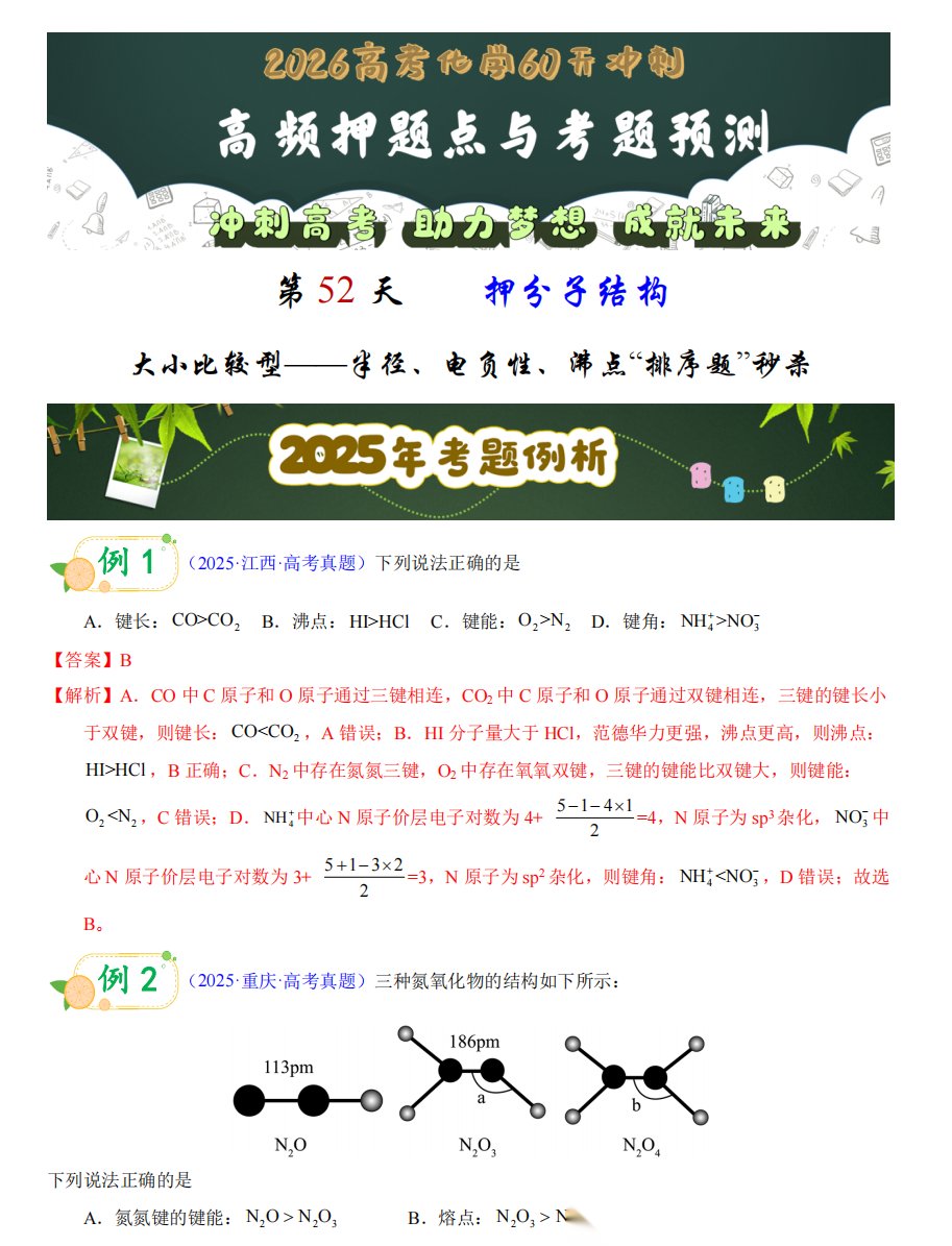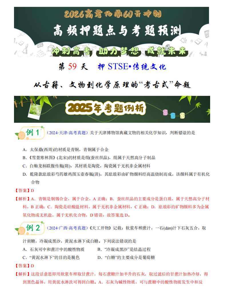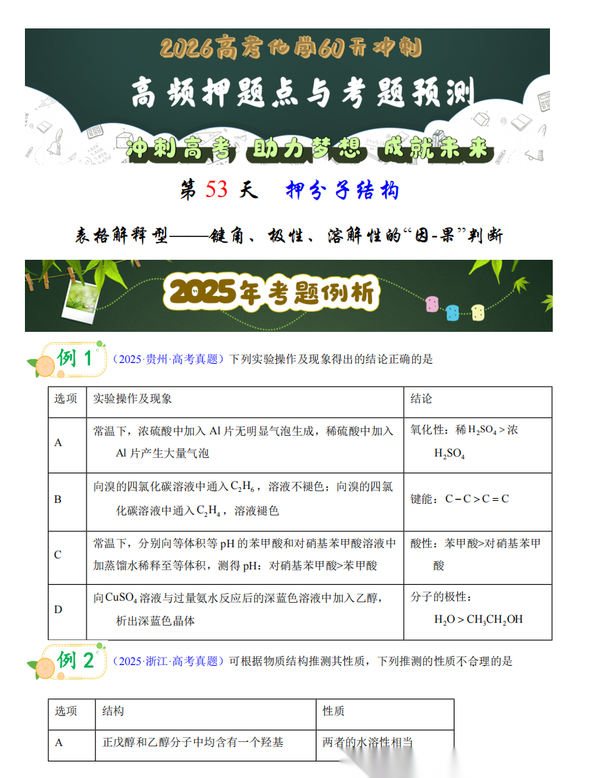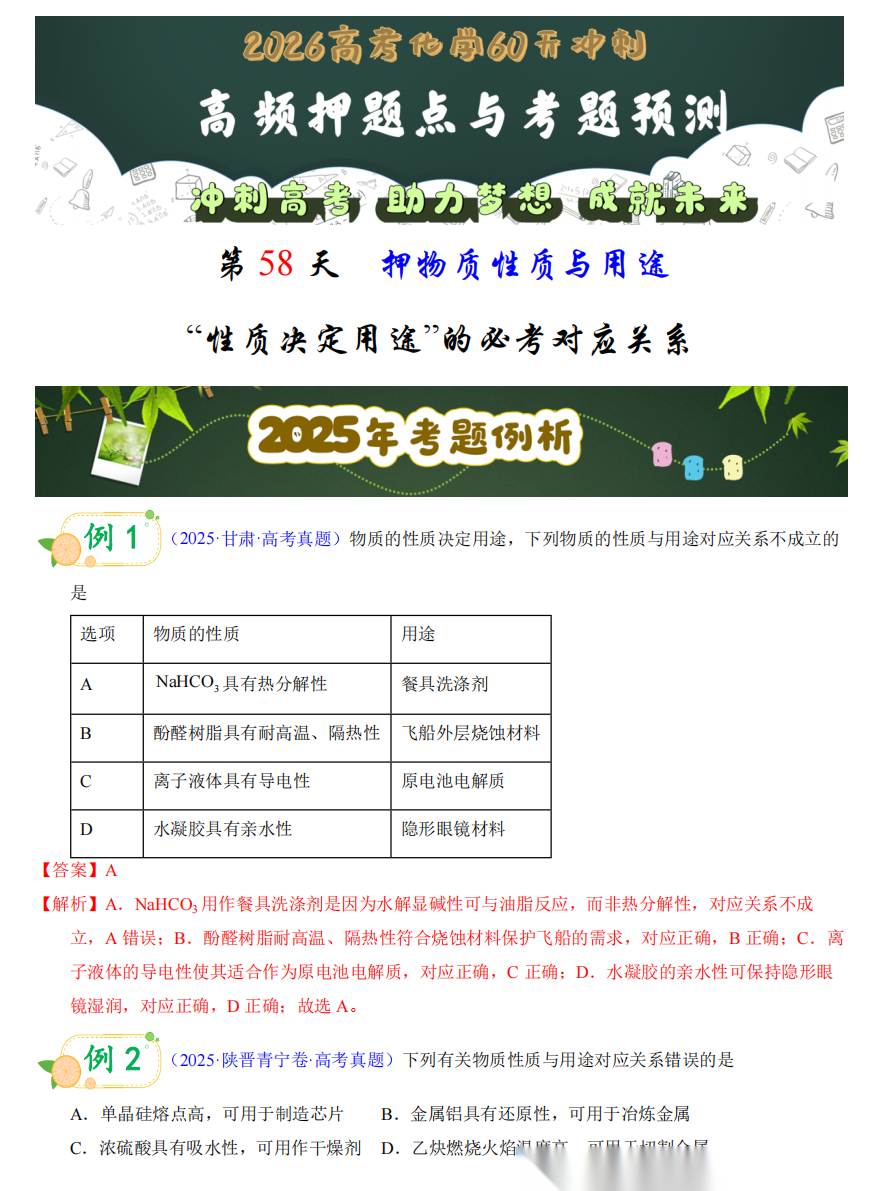 【高考化学】【冲刺·高频押题】2026年高考化学最后60天冲刺·高考化学高频押题点与考题预测(全国通用)学生版+解析版(完整版)(持续更新)